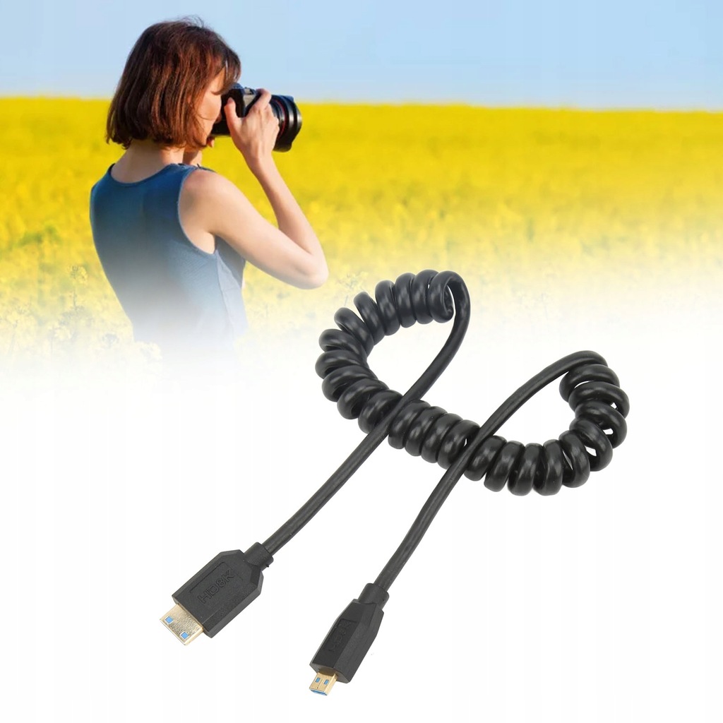 5. Kabel spiralny 1,2 m: Kabel adaptera interfejsu multimedialnego HD jest zwinięty, jego długość wynosi 1,1-1,2 m w stanie prostym i około 0,6 m w stanie statycznym; Średnica zewnętrzna 4,0 mm.