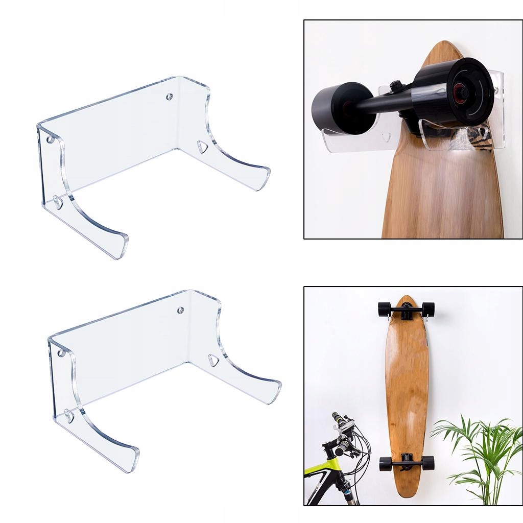 2Pcs Skateboard Holder Wall Mount Hanger Display Hardware Clear