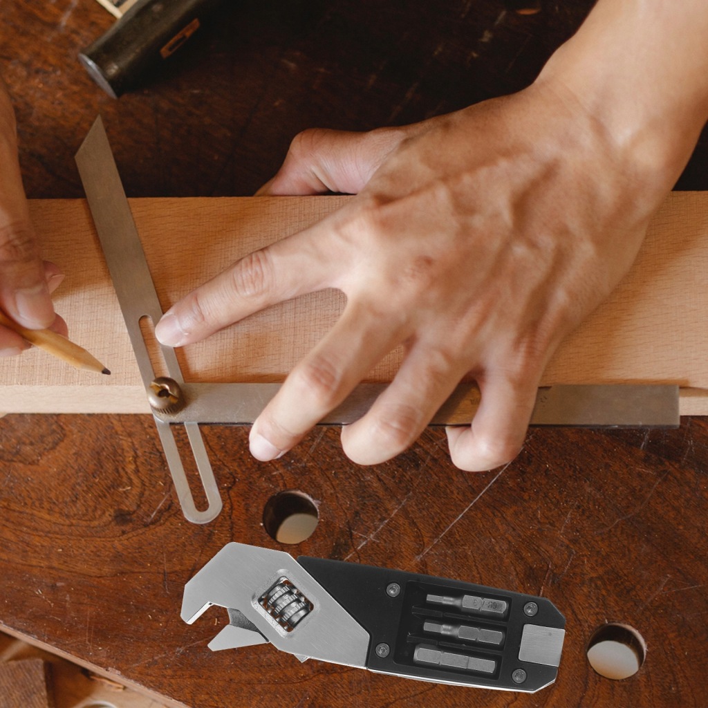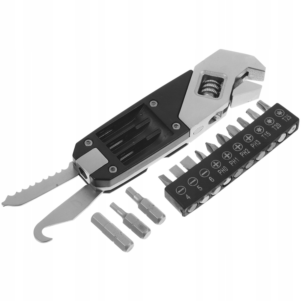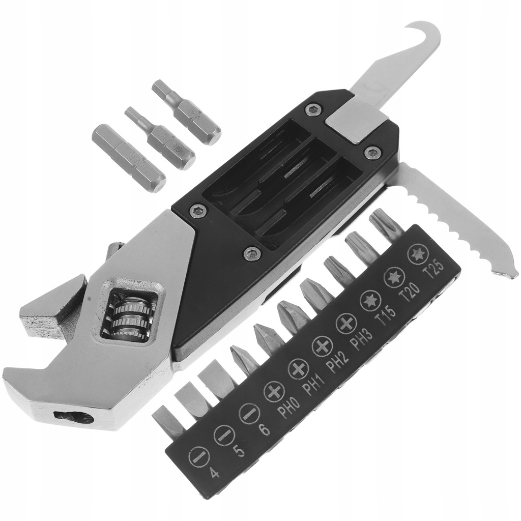 Multifunctional: tighten screw, adjustable wrench, cut off the rope, replace the bit, etc.