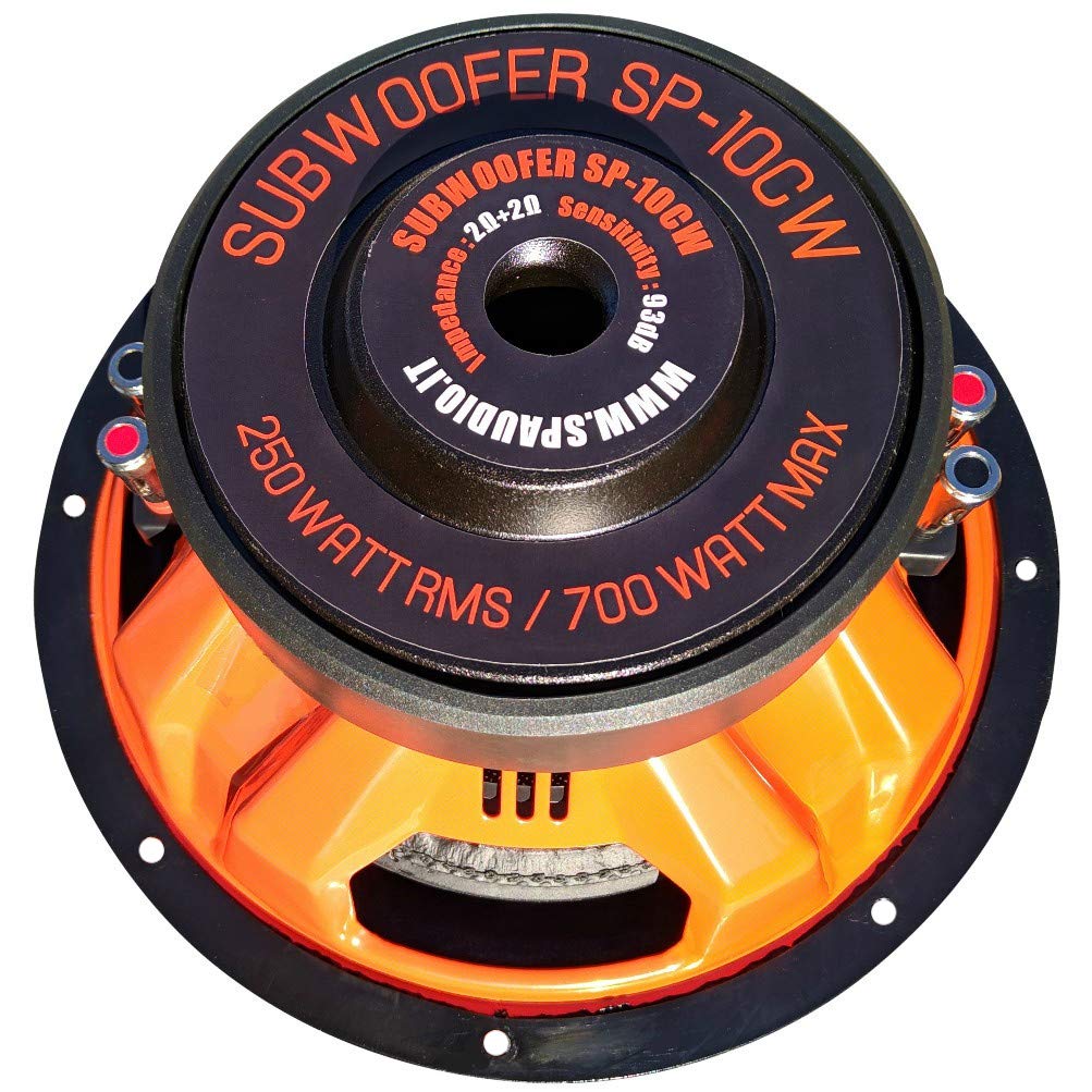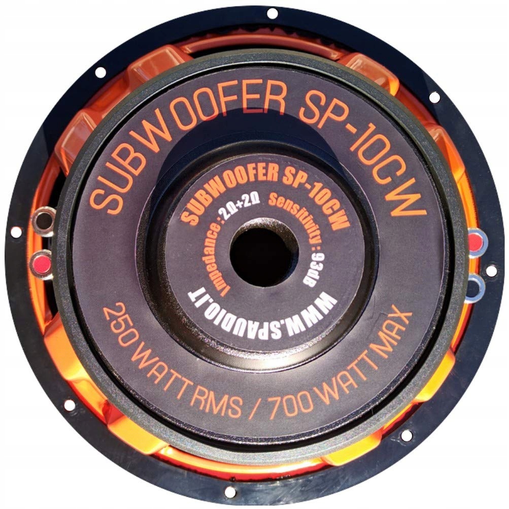 1 SP AUDIO SP-10CW subwoofer 25,00 cm 250 mm 10" średnica podwójnej cewki dvc 2 + 2 omy 250 watt rms 700 watt max pokrywa bagażnika samochód, 1 sztuka