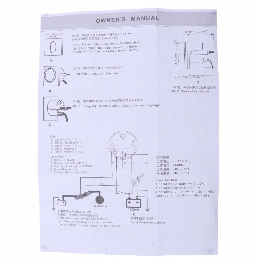 Średnica miernika: 52mm/2 cale