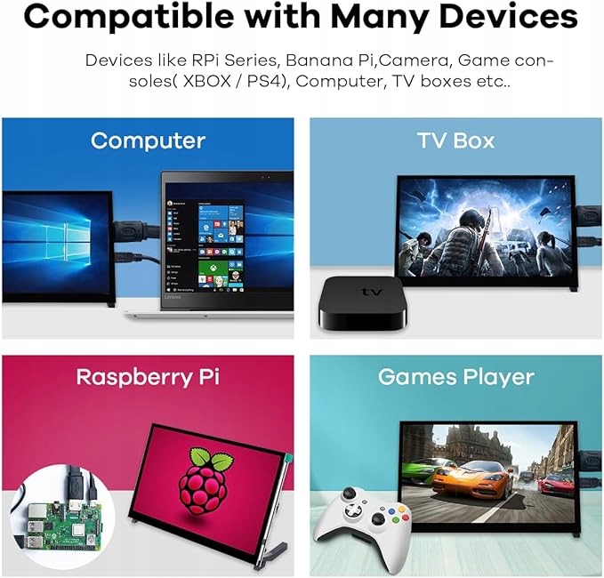 - W przypadku korzystania z Raspberry PI, Raspbian, Kali Linux, ubuntu i innych głównych systemów obsługujących sterowanie dotykowe, plug and play free driver.