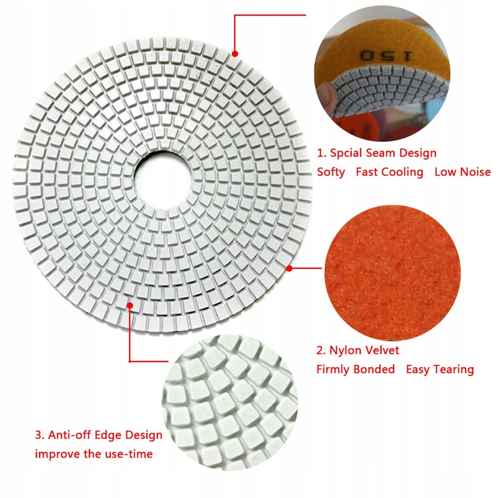 WYSOKIEJ WYDAJNOŚCI POLEROWANIE GRANITU: granitowe podkładki polerskie wykonane są z wysokiej jakości diamentu. Duża siła szlifowania, dobra elastyczność, odporność na zużycie, wysoka wydajność polerowania i długa żywotność.