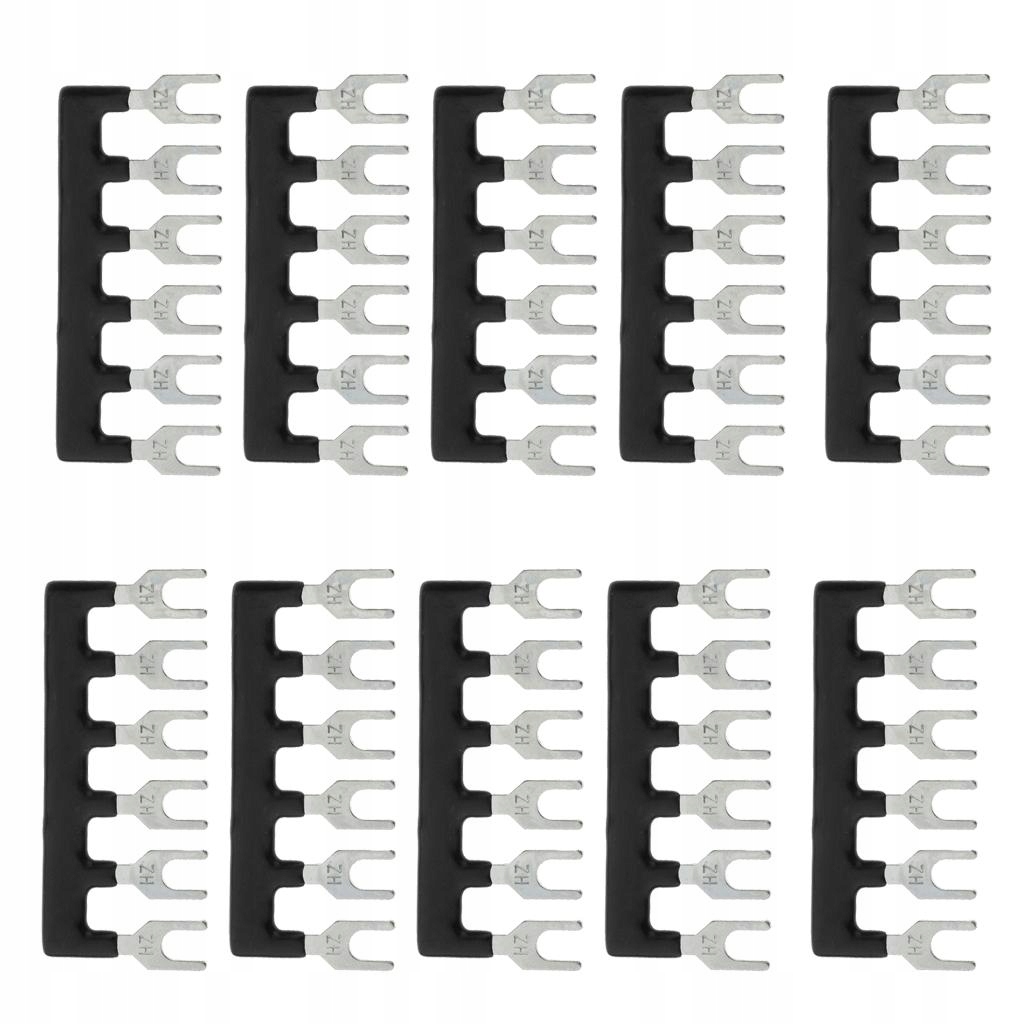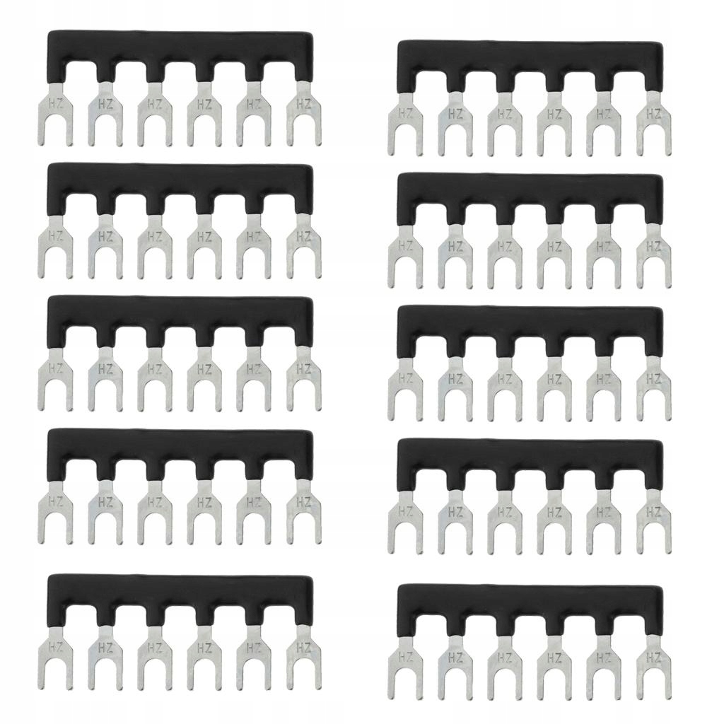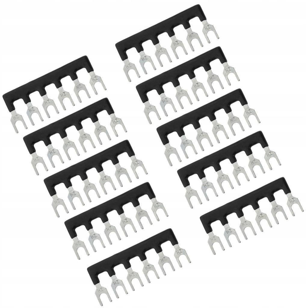 10x 6-pozycyjny widelec, wstępnie izolowana listwa zaciskowa, zworka barierowa, czarna