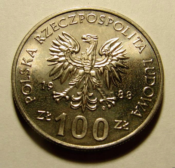 - 100 zł 1988 rok -70 rocz. Powstania Wielkopolskiego- moneta obiegowa