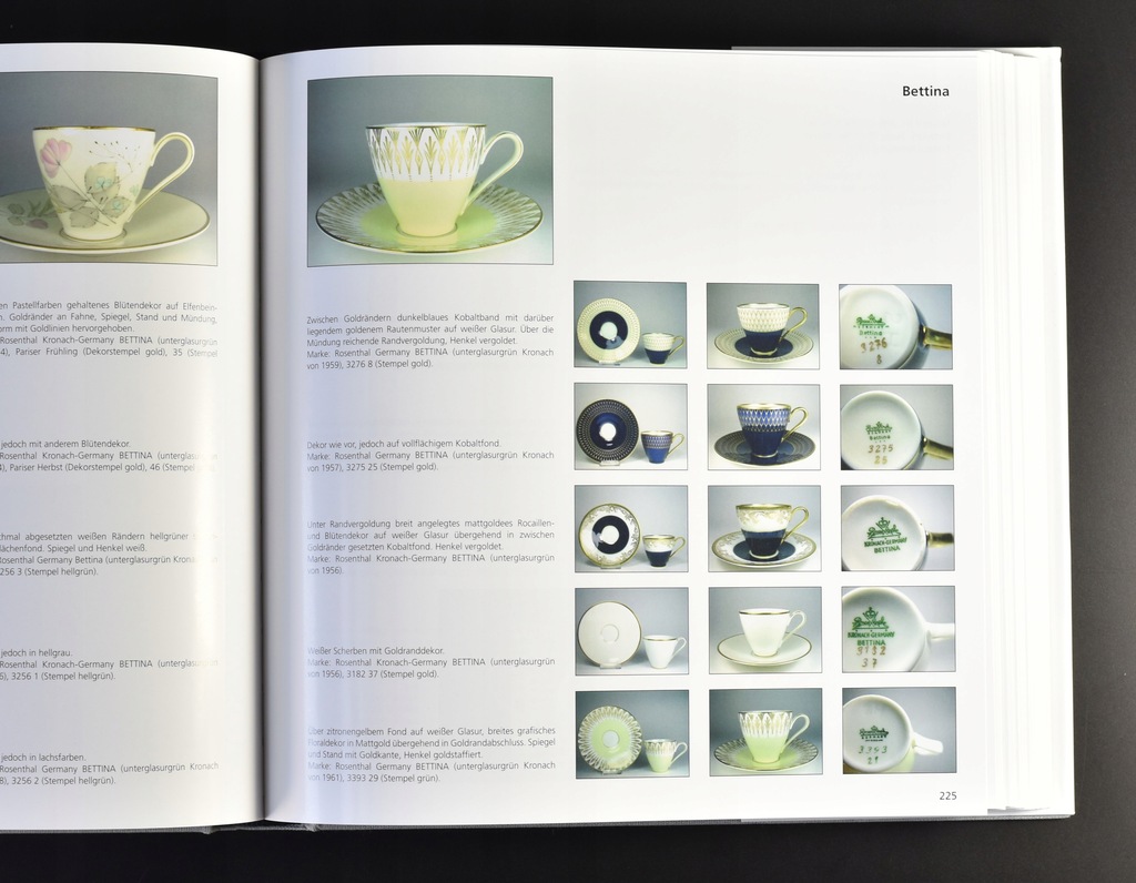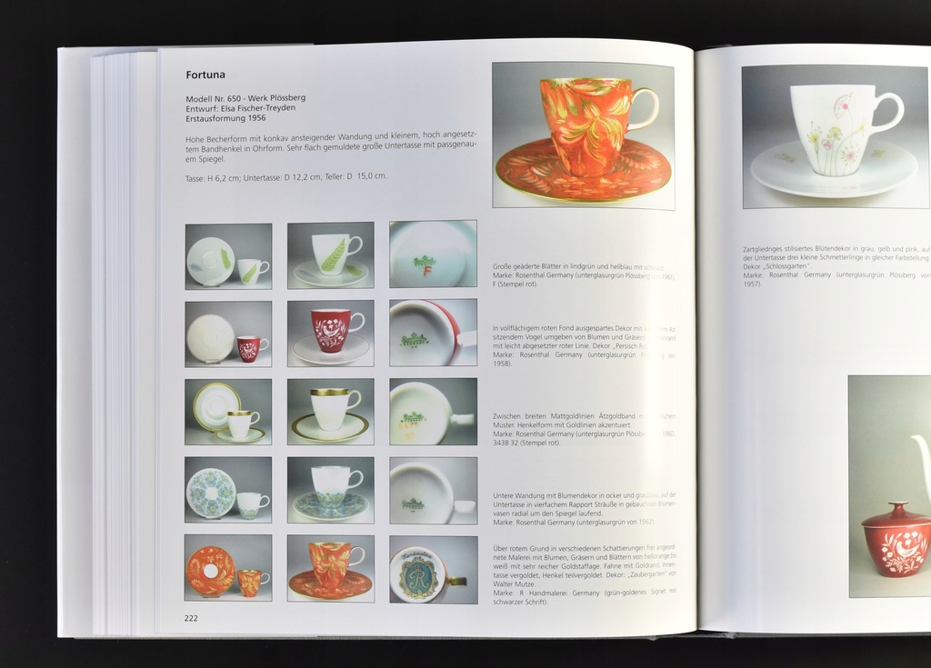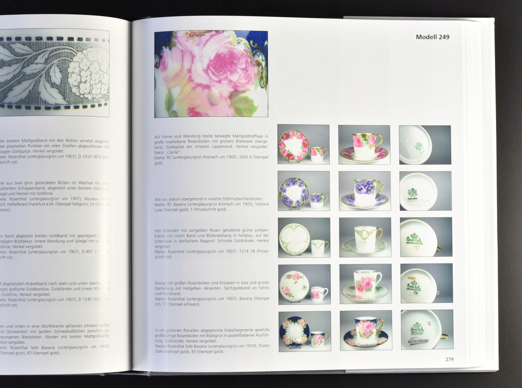 Obszerny album o modelach filiżanek z okresu od historyzmu do czasów współczesnych. Liczne, barwne fotografie pokazujące mnogość zdobień i wzorów. Książka zawiera także tablicę sygnatur stosowanych przez manufakturę.