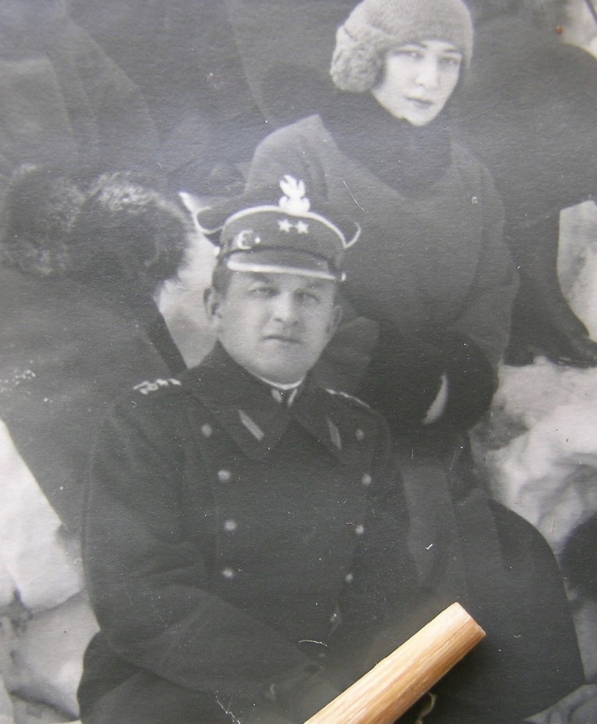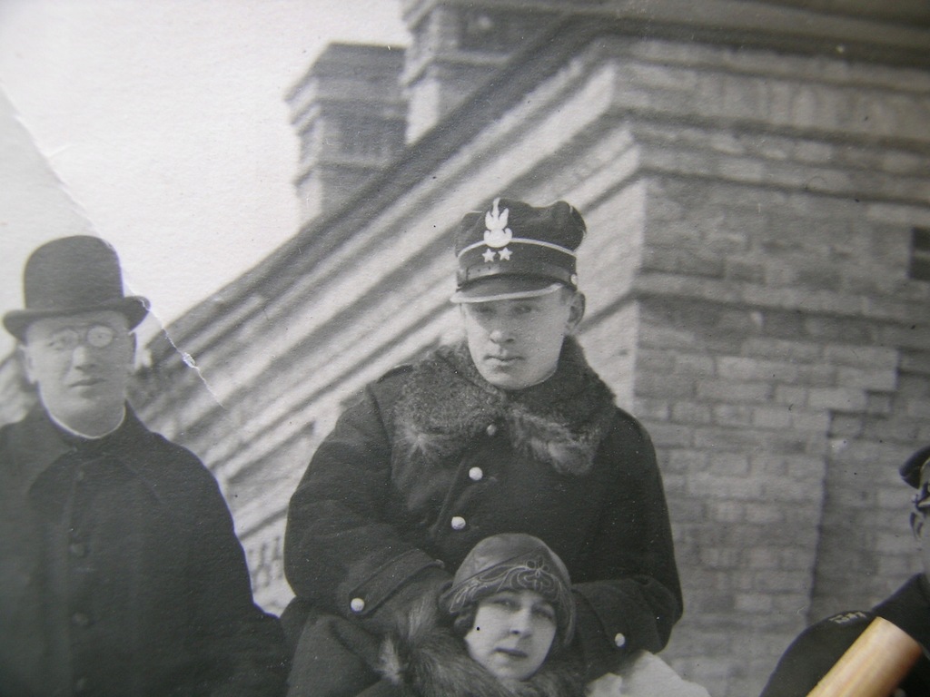 Przedmiotem licytacji jest ciekawe przedwojenne zdjęcie przedstawiające zimą oficerów 12 Pułku Ułanów Podolskich z damami podczas śnieżnych zabaw !!! Ta sama grupa co na poprzednim zdjęciu, tym razem siedzi na śnieżnym pagórku. Zdjęcie zrobione w Białokrynicy - koło budynku koszar który jest ładnie widoczny! Oficer siedzący po prawej ma ciekawego orła na rogatywce. Orzeł typu francuskiego. Oficer niskiego wzrostu siedzący po lewej, bez oznaczeń pułkowych, to prawdopodobnie porucznik Feliks Gosslar - wieloletni płatnik pułku. Jako oficer administracyjny nie nosił oznaczeń pułkowych. Stan zdjęcia jak na skanach, z tyłu podklejane, ale bardzo wyraźne, zwłaszcza pod lupą. Ładnie widoczne numery pułkowe, proporczyki, rogatywki i inne elementy umundurowania. Umundurowanie wczesnego typu z lat 20-tych. Format zdjęcia - duża pocztówka: 16 cm. X - 11,8 cm.