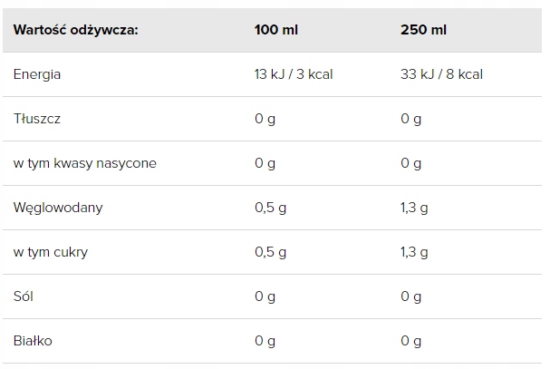 woda, soki owocowe z soków zagęszczonych (pomarańczowy 3,4%, brzoskwiniowy 0,5%, jabłkowy 0,4%, z marakui 0,1%); dwutlenek węgla, kwasy: kwas cytrynowy, kwas jabłkowy; koncentraty roślinne (marchew, krokosz barwierski); substancje słodzące: aspartam, acesulfam K; substancja konserwująca: sorbinian potasu; naturalny aromat, stablizator: estry glicerolu i żywicy roślinnej. Zawiera źródło fenyloalaniny.