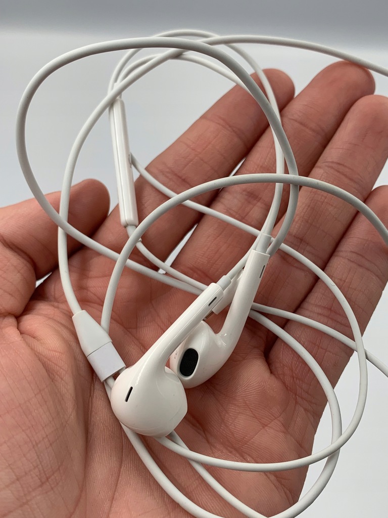 Słuchawki douszne EarPods ze złączem Lightning mają wbudowanego pilota umożliwiającego regulację głośności, sterowanie odtwarzaniem muzyki i wideo oraz odbieranie i kończenie połączeń — wystarczy nacisnąć odpowiedni przycisk.