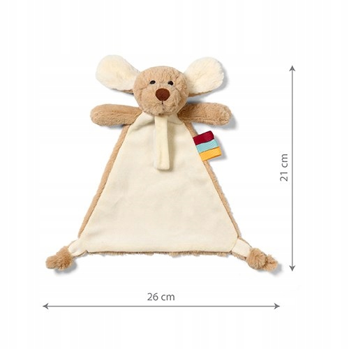 To coś więcej niż zwykła szmatka przytulanka. Ma też praktyczną zawieszkę do smoczka, a kolorowe metki zachęcają do zabawy i poznawania świata.