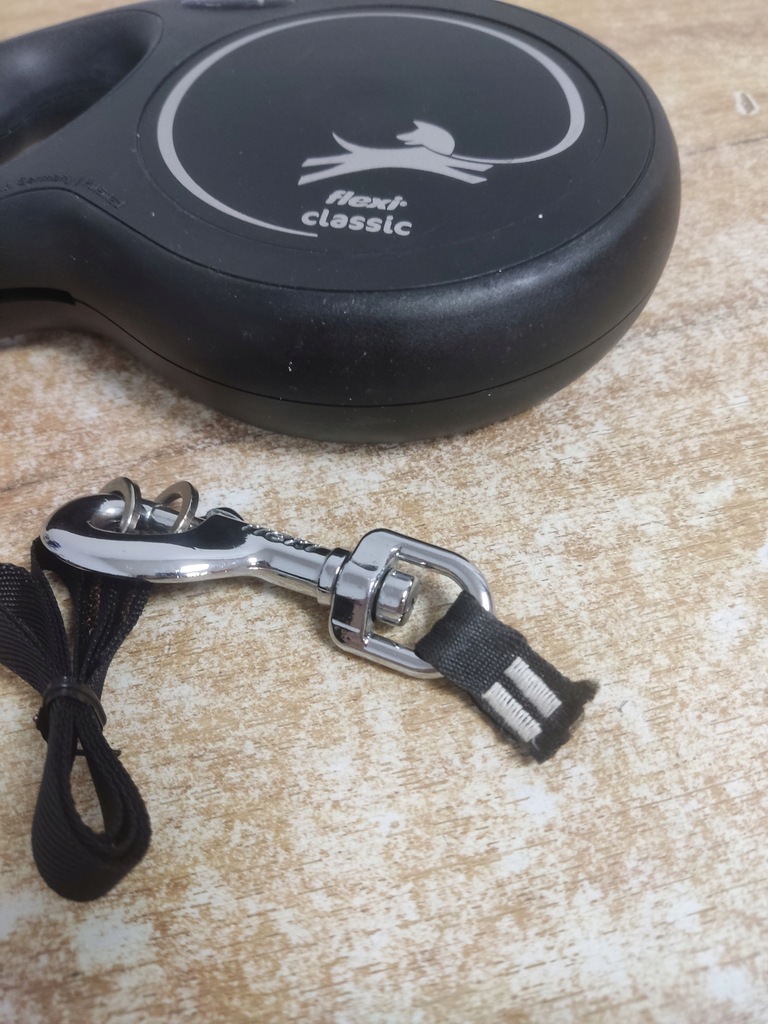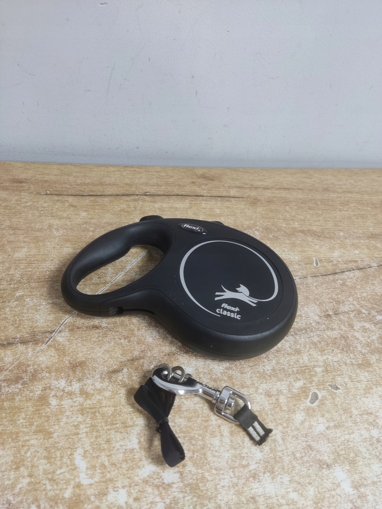 Produkt używany, smycz zwinięta w środku, odcięte zapięcie, pobrudzone