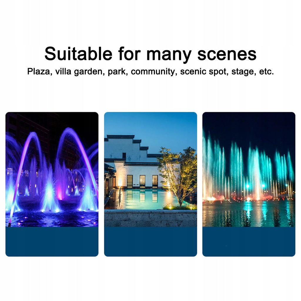 5. Zastosowania: Idealny do wysokich i niskich zatok, basenów i wszędzie tam, gdzie wymagane jest oświetlenie o dużej mocy. Szeroko stosowany w basenach, wannach, domowych akwariach, fontannach, wodospadach, środowiskach morskich i morskich.