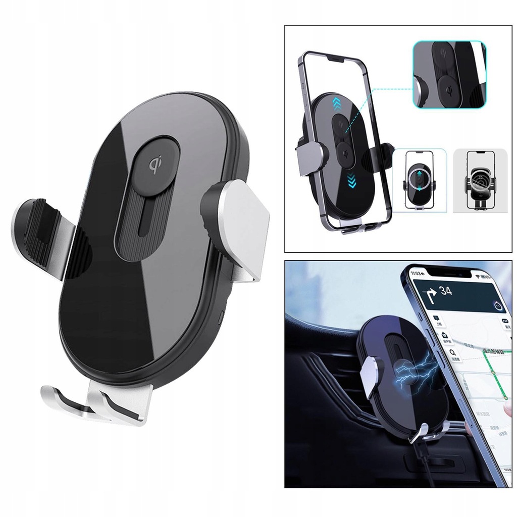 This wireless car charger mount combines fast wireless charger and phone holder for car to one design perfectly. It will save your time for searching the charger to plug in when driving and ensure enough battery life to use GPS.
