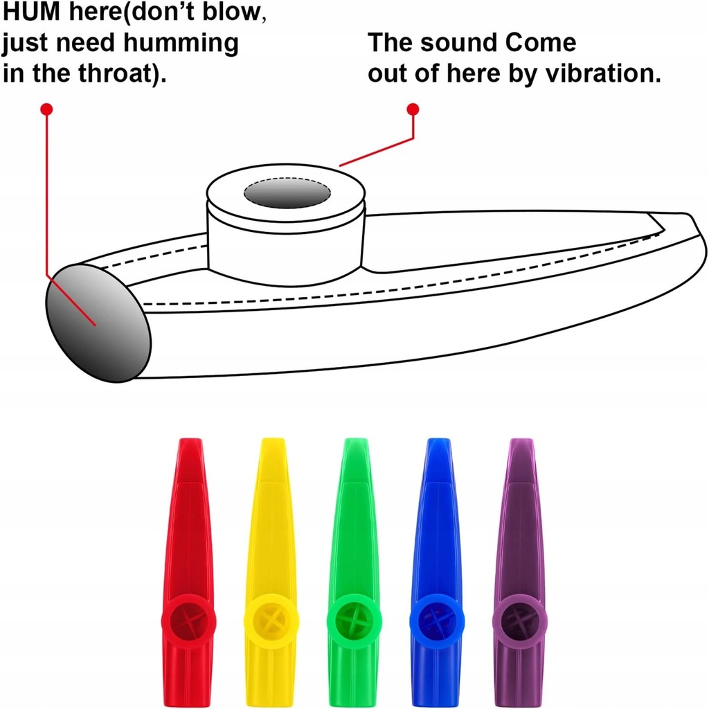 Materiał wysokiej jakości: plastikowe kazoo są wykonane z wysokiej jakości tworzywa sztucznego, niełatwe do złamania, nietoksyczne i trwałe, krawędzie zostały wypolerowane, prosty instrument muzyczny, ale zapewnia mnóstwo zabawy