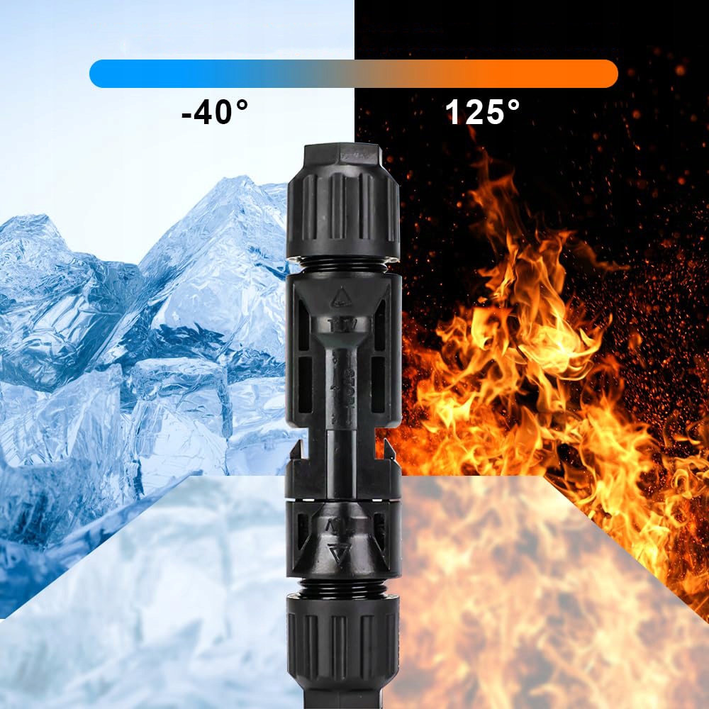 Wtyczka solarna wykonana z materiału PPO. Materiał izolacyjny i pin przewodzący to cynowana miedź. Wysokiej jakości materiał zapewnia, że złącze kabla panelu słonecznego może pracować w temperaturach -40 ° C ~ + 125 ° C. Cały korpus jest trudnopalny, aby zapewnić bezpieczne użytkowanie. Złącze panelu słonecznego może wytrzymać trudne warunki pogodowe, takie jak wysoka temperatura, ulewny deszcz lub burza śnieżna przez długi czas