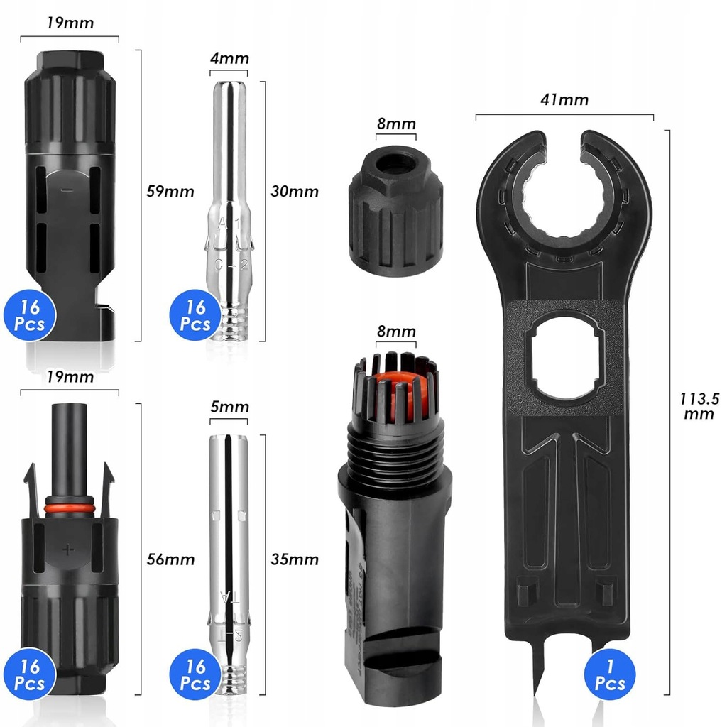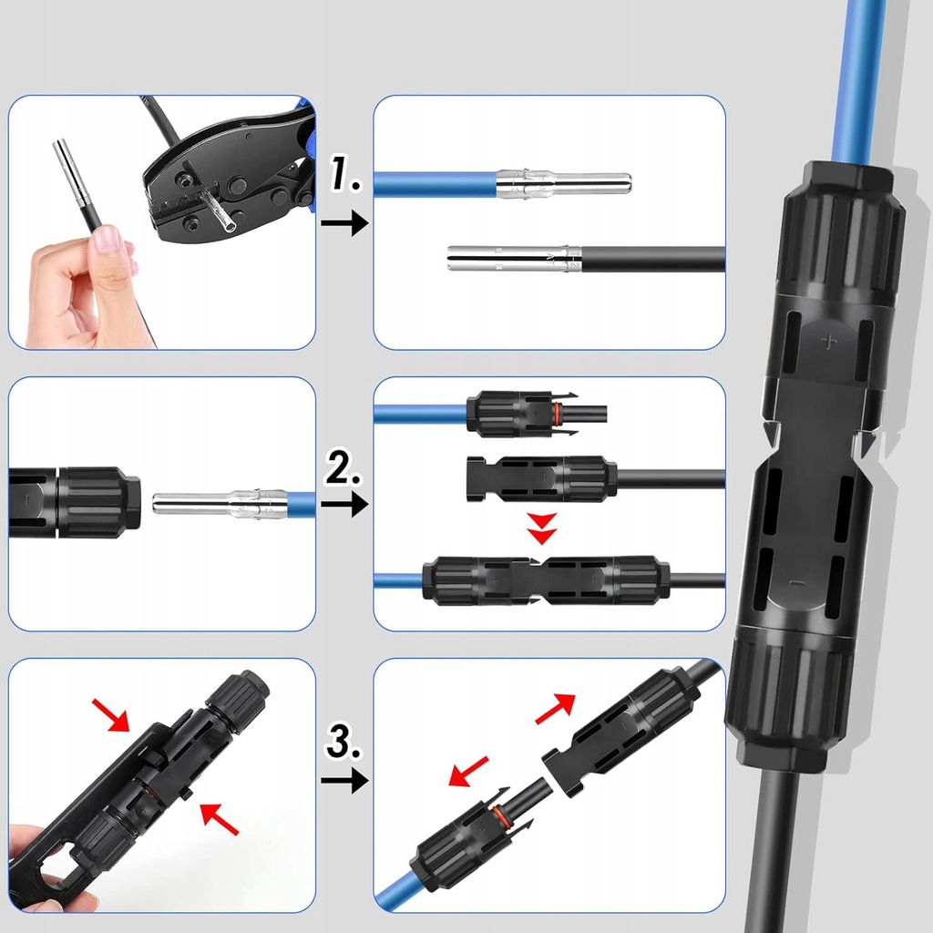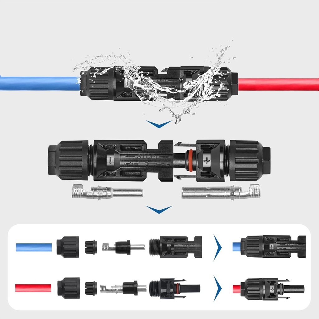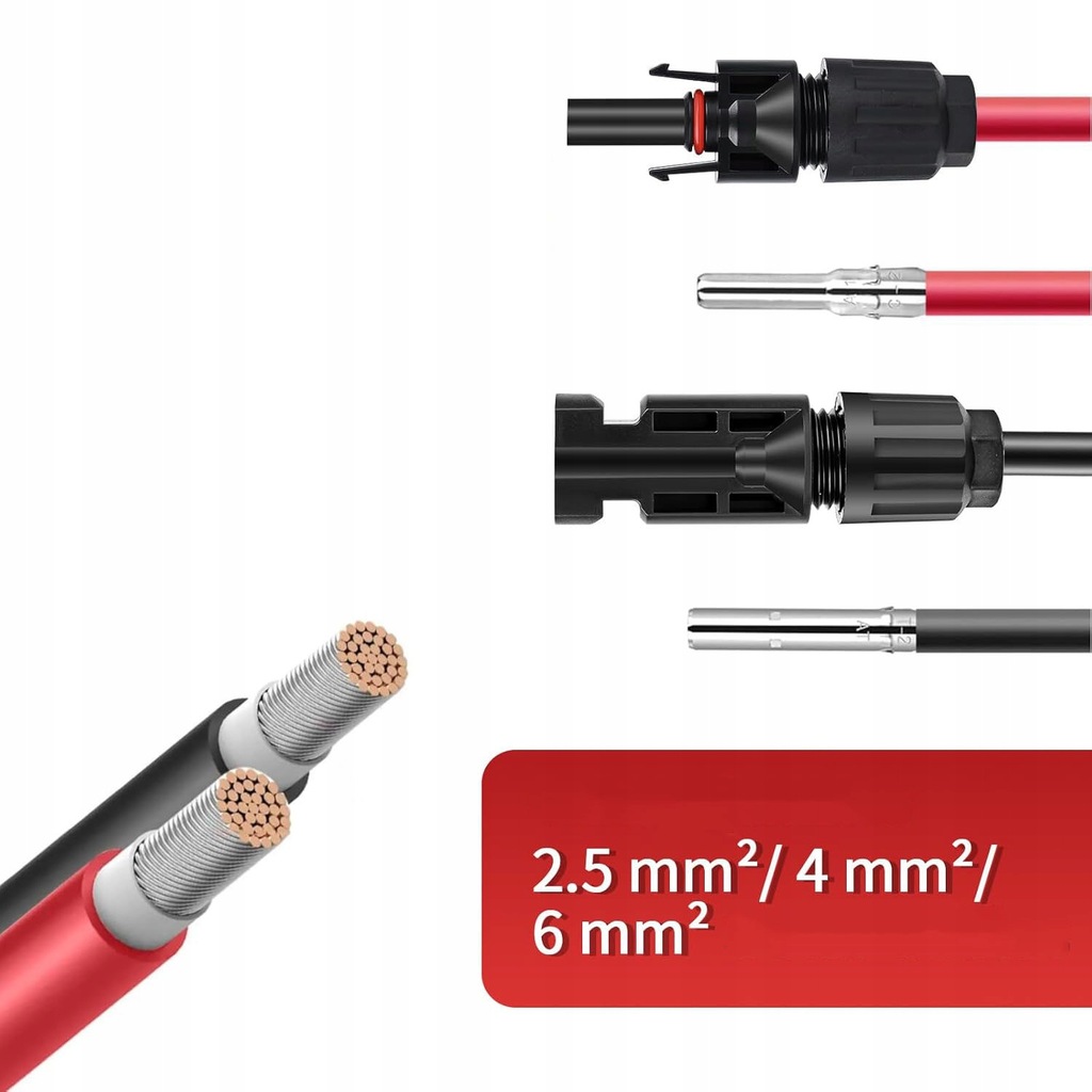 Złącze kabla solarnego jest kompatybilne z większością złączy fotowoltaicznych, kompatybilne z kablami fotowoltaicznymi o różnych średnicach izolacji (2,5/4/6 mm²/14/12/10 AWG).