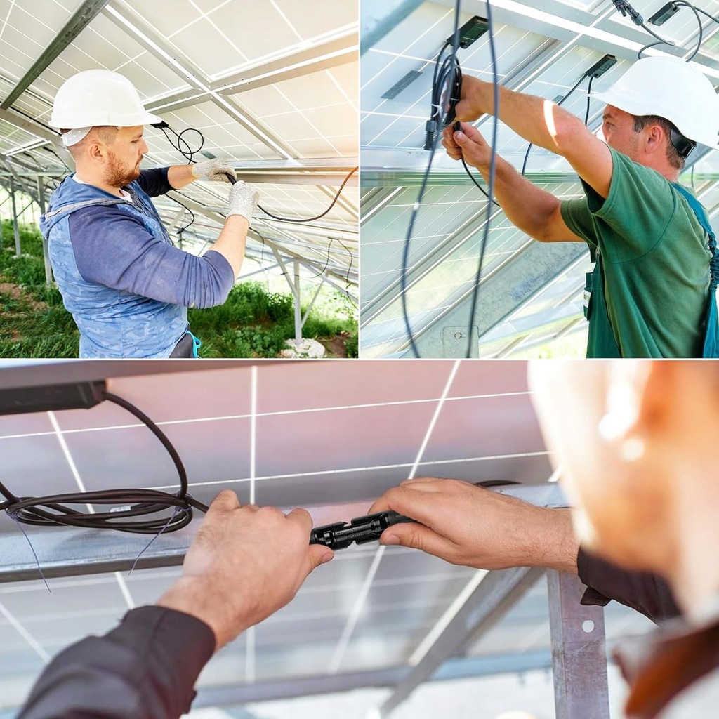 Złącze wtykowe 6 mm² jest łatwe w instalacji, można użyć dołączonego klucza do szybkiego i łatwego montażu lub demontażu, nie spowoduje uszkodzenia złączy i jest zwykle przeznaczone do uzupełnienia panelu słonecznego (PV), zwykle w zastosowaniach równoległych.