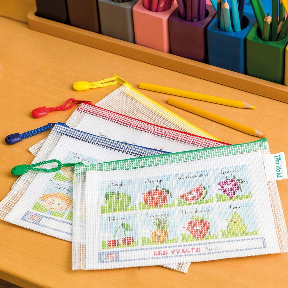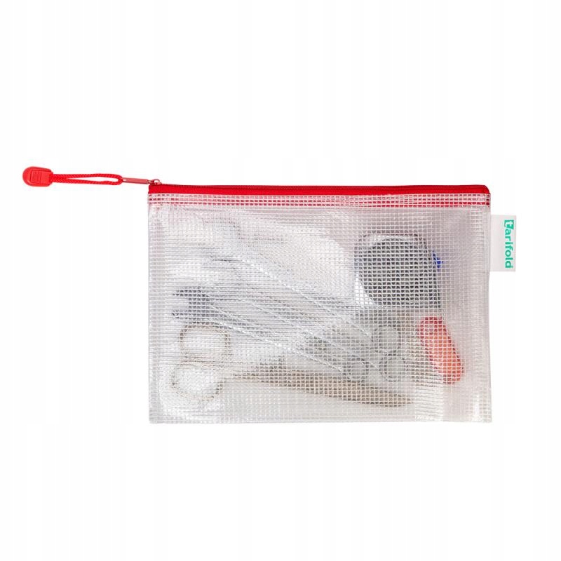 Teczki Tarifold w rozmiarze A5 z zamkiem błyskawicznym w kolorze czerwonym. Otwierane na dłuższym boku. Doskonałe do ochrony i przenoszenia dokumentów, czeków, drobnych przedmiotów lub artykułów biurowych i szkolnych. Przezroczysty materiał pozwala na przeglądanie i identyfikację zawartości. Odporne na zniszczenia i rozdarcie. Wykonane z wysokiej jakości, przyjaznego dla środowiska PCV o grubości 230 µ. Dostarczane w opakowaniu po 8 szt.