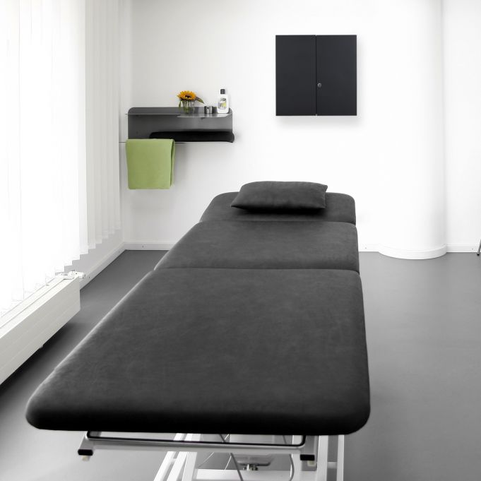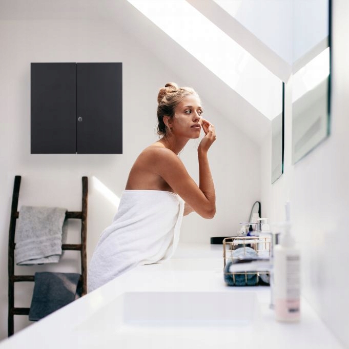 Antracytową apteczkę łatwo zawiesić na ścianie w łazience, kuchni czy gabinecie lekarskim, korzystając z dołączonego materiału montażowego.