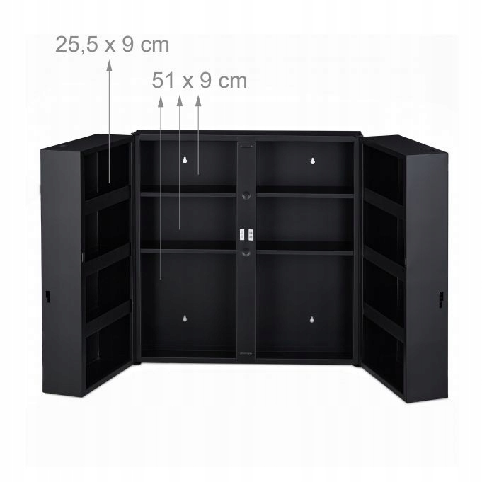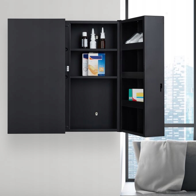 2 drzwiowa apteczka domowa stalowa wisząca z półkami kluczykiem czarna OUTLET