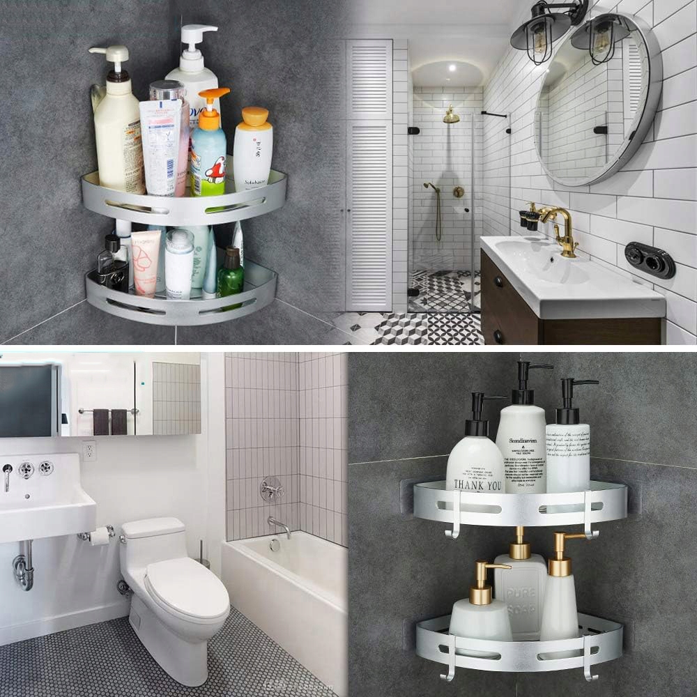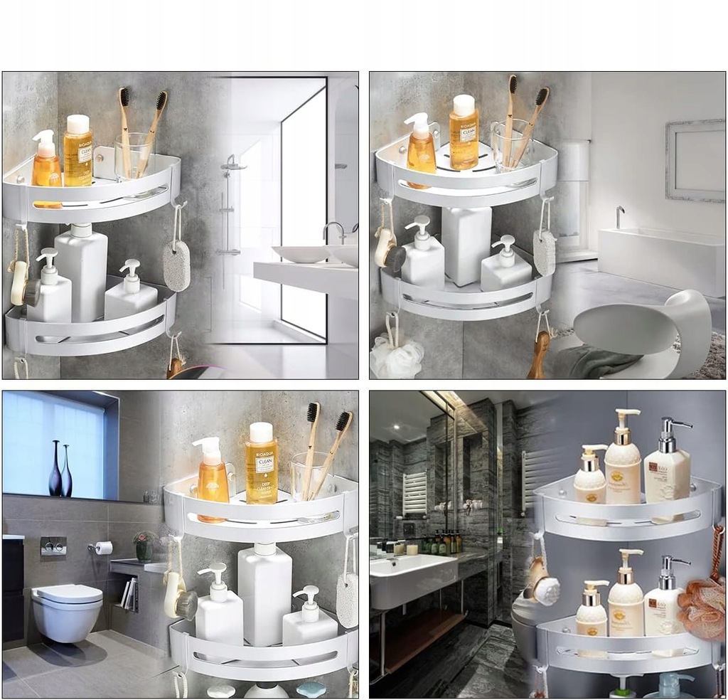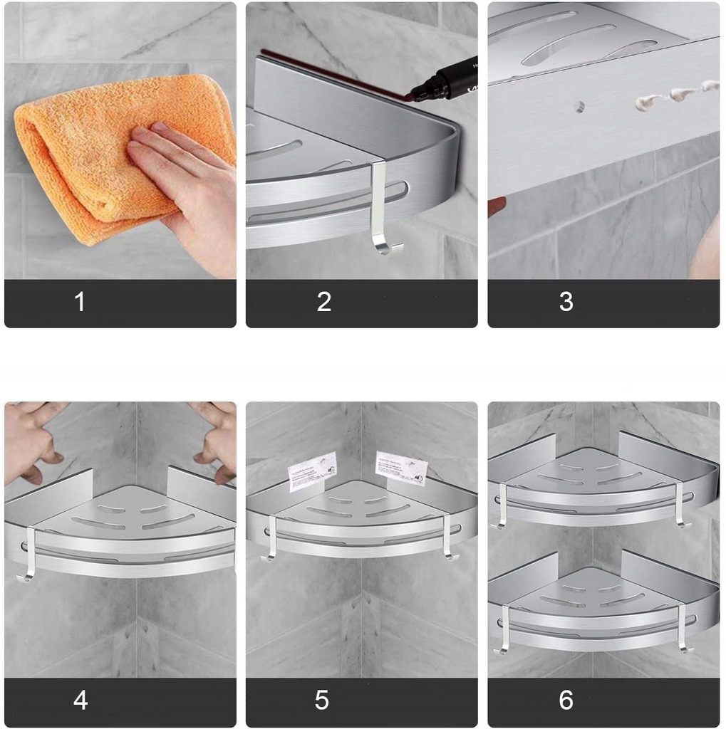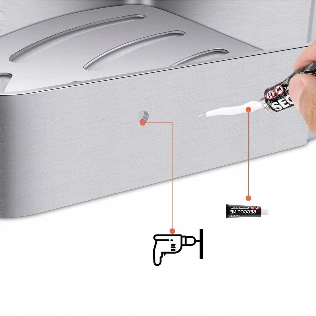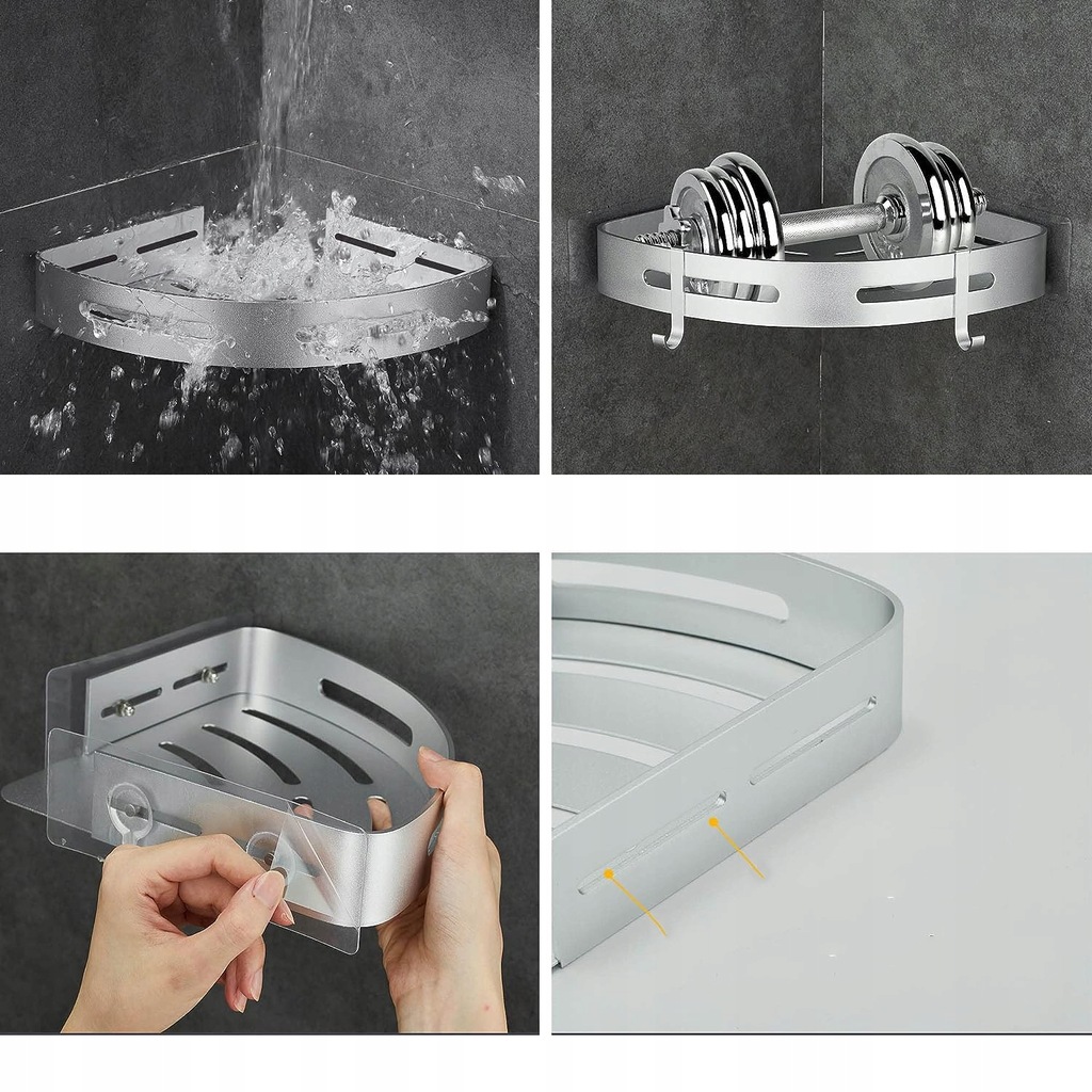 ✅ Montaż bez wiercenia: Naszą narożną półkę łazienkową można łatwo zamontować na ścianie za pomocą dołączonego kleju, bez uszkadzania ściany. (Jeśli chcesz zainstalować na nierównej ścianie, dostarczamy również zestaw sprzętu do wiercenia).