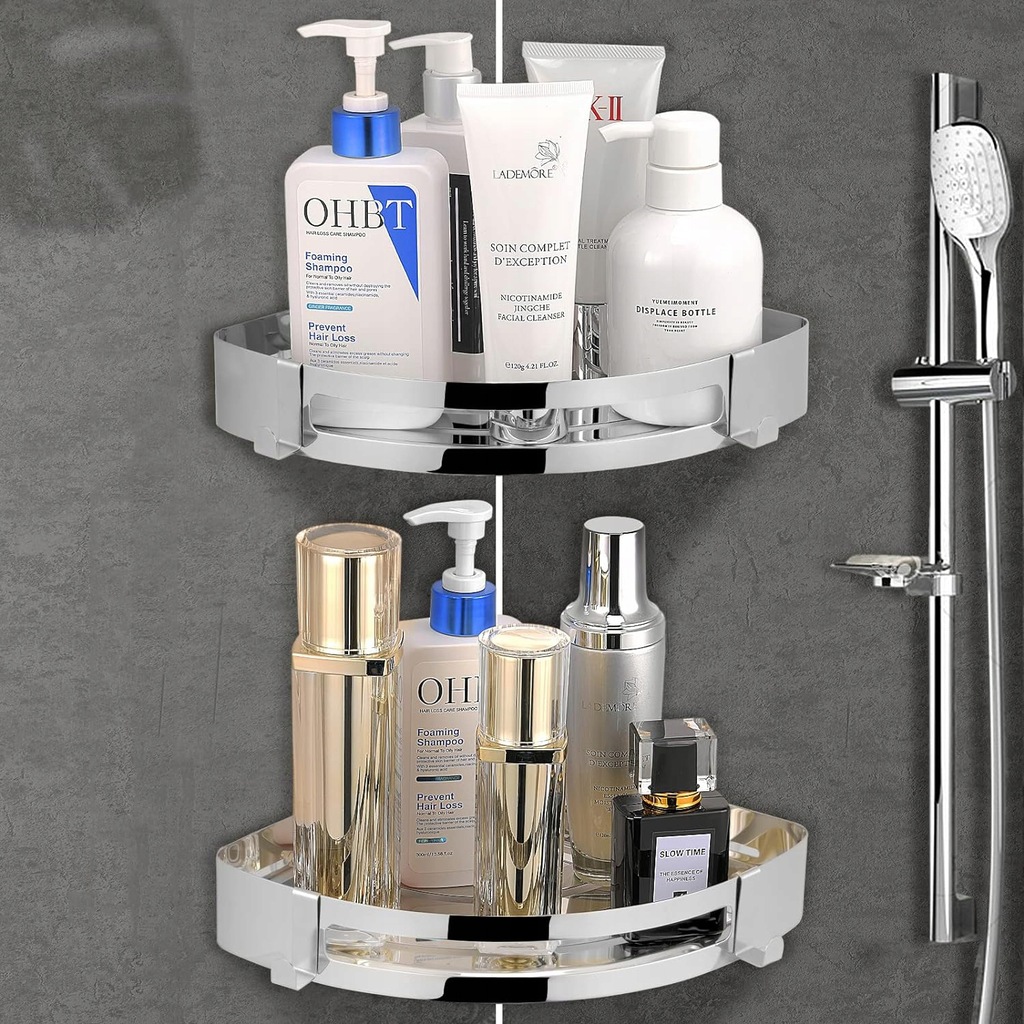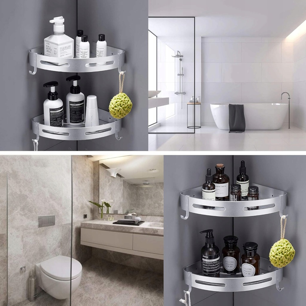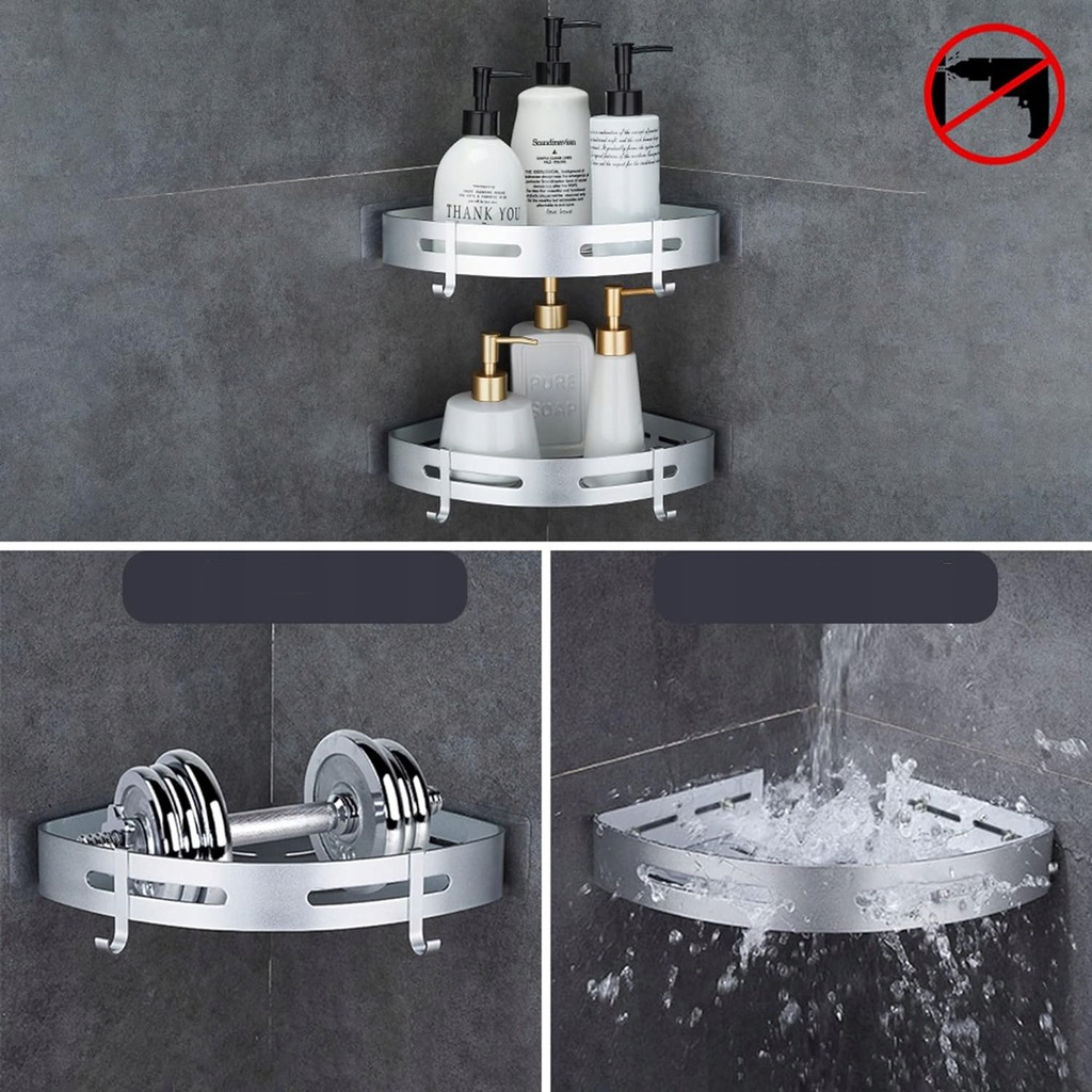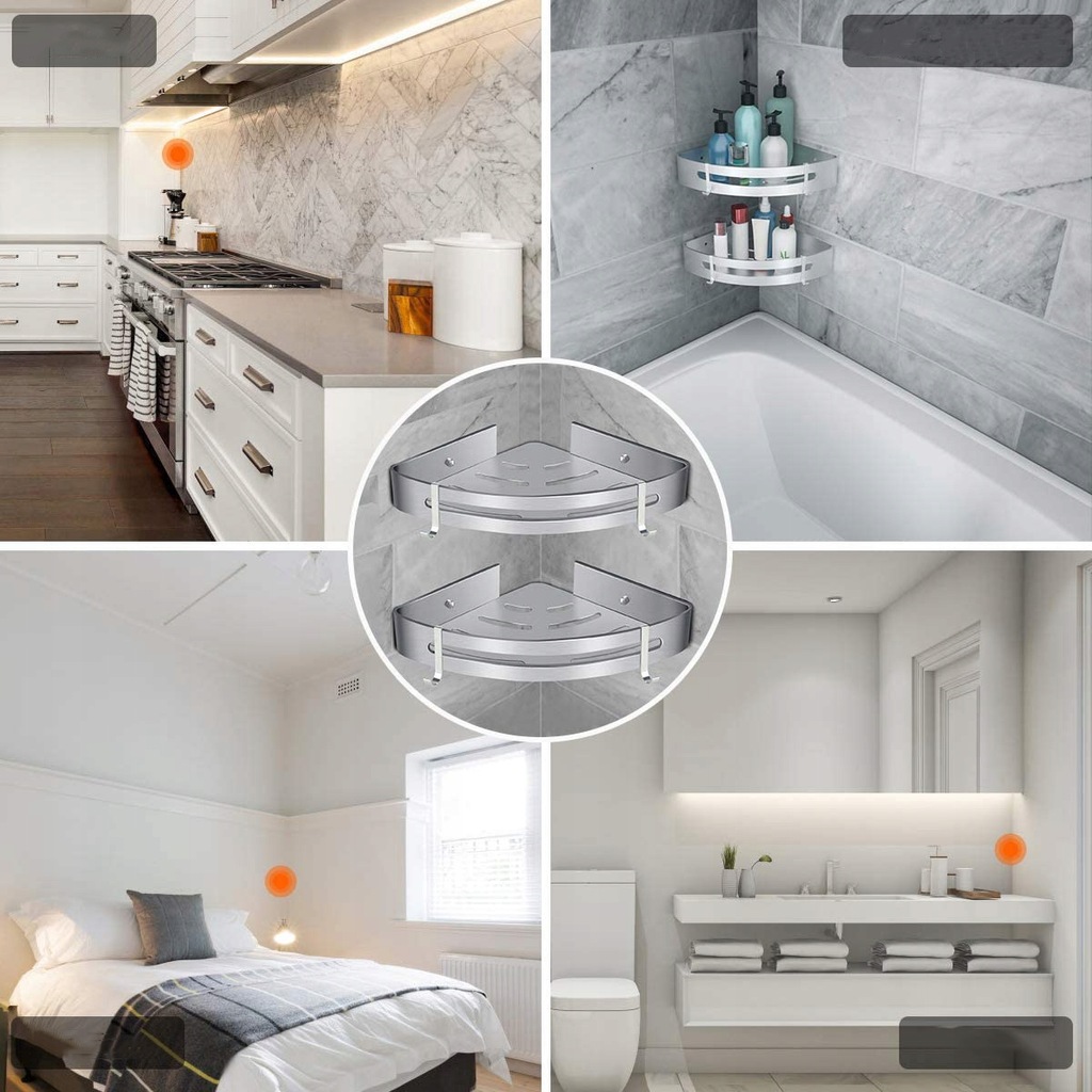 ✅ Montaż bez wiercenia: Naszą narożną półkę łazienkową można łatwo zamontować na ścianie za pomocą dołączonego kleju, bez uszkadzania ściany. (Jeśli chcesz zainstalować na nierównej ścianie, dostarczamy również zestaw sprzętu do wiercenia).