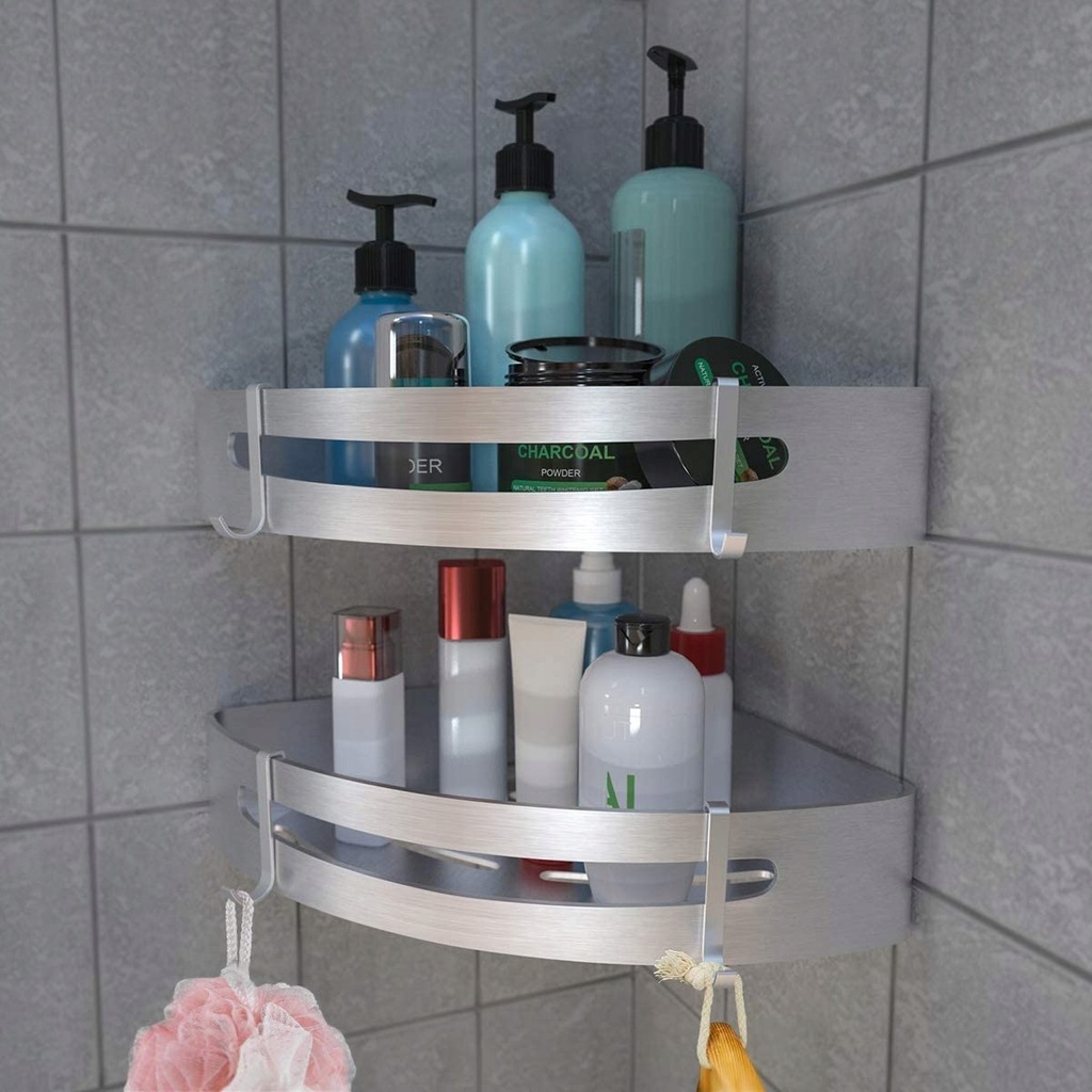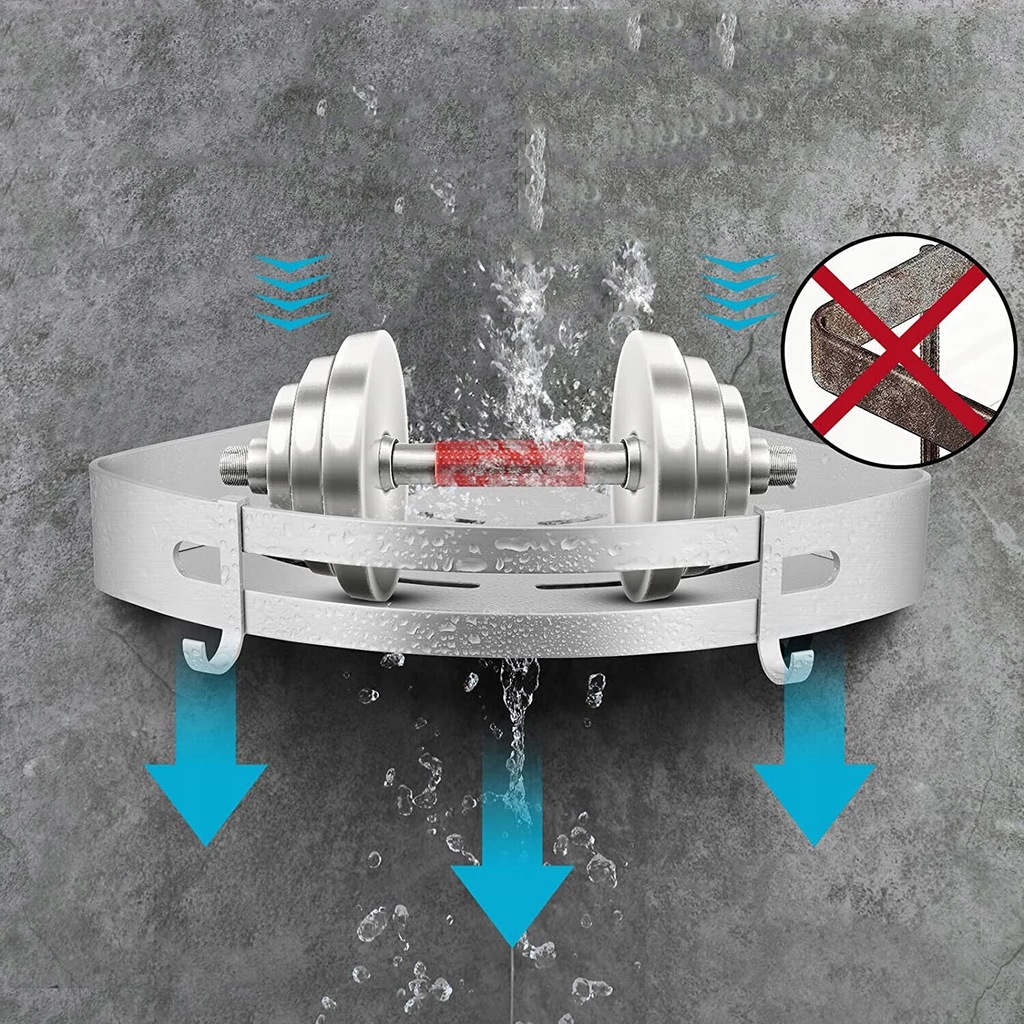 ✅ Projekt otworu odwadniającego: Organizer do przechowywania półek łazienkowych bez wiercenia zapobiega stagnacji wody na półce po kąpieli pod prysznicem, utrzymując ją suchą i uporządkowaną oraz zapobiegając gromadzeniu się bakterii w rogach półki prysznicowej.