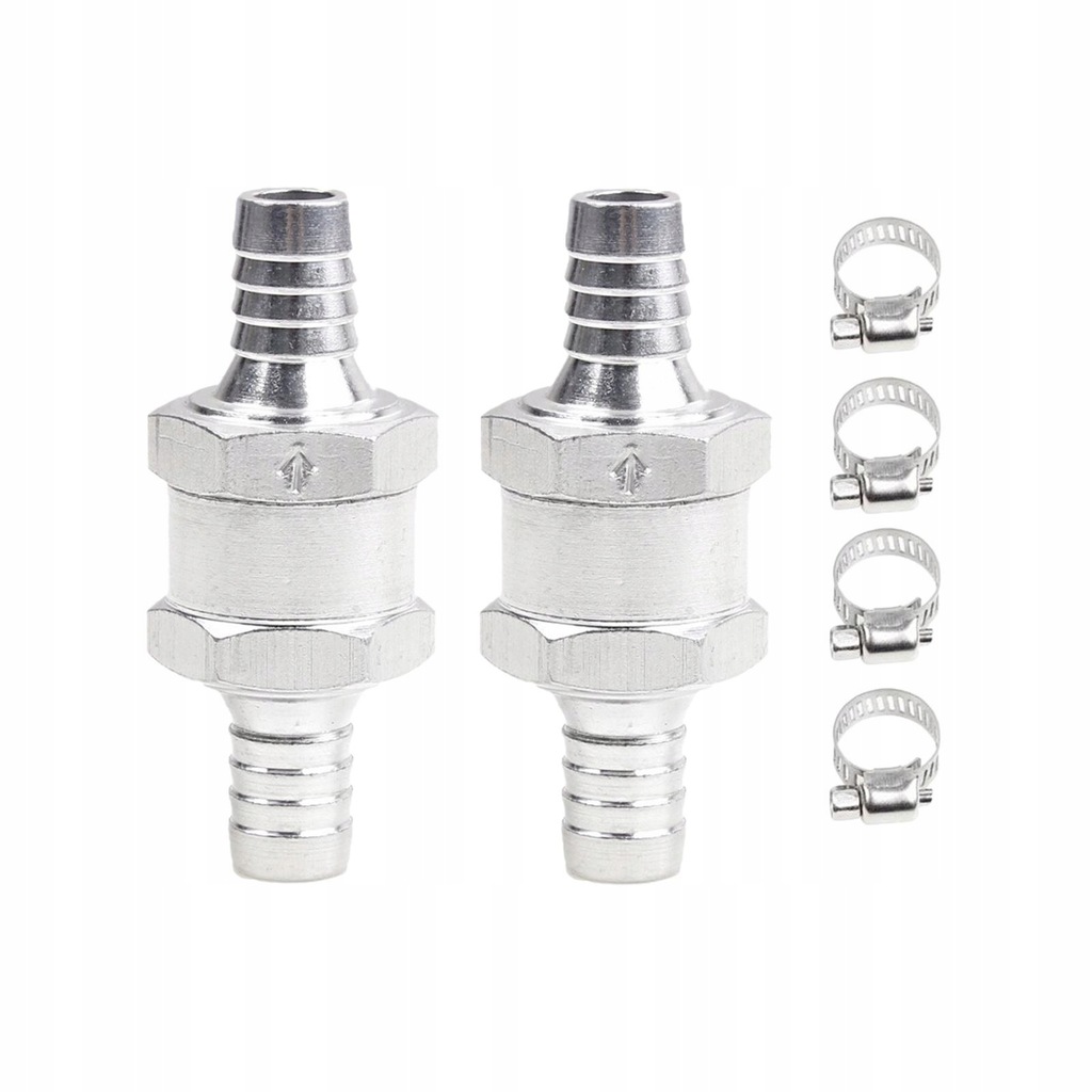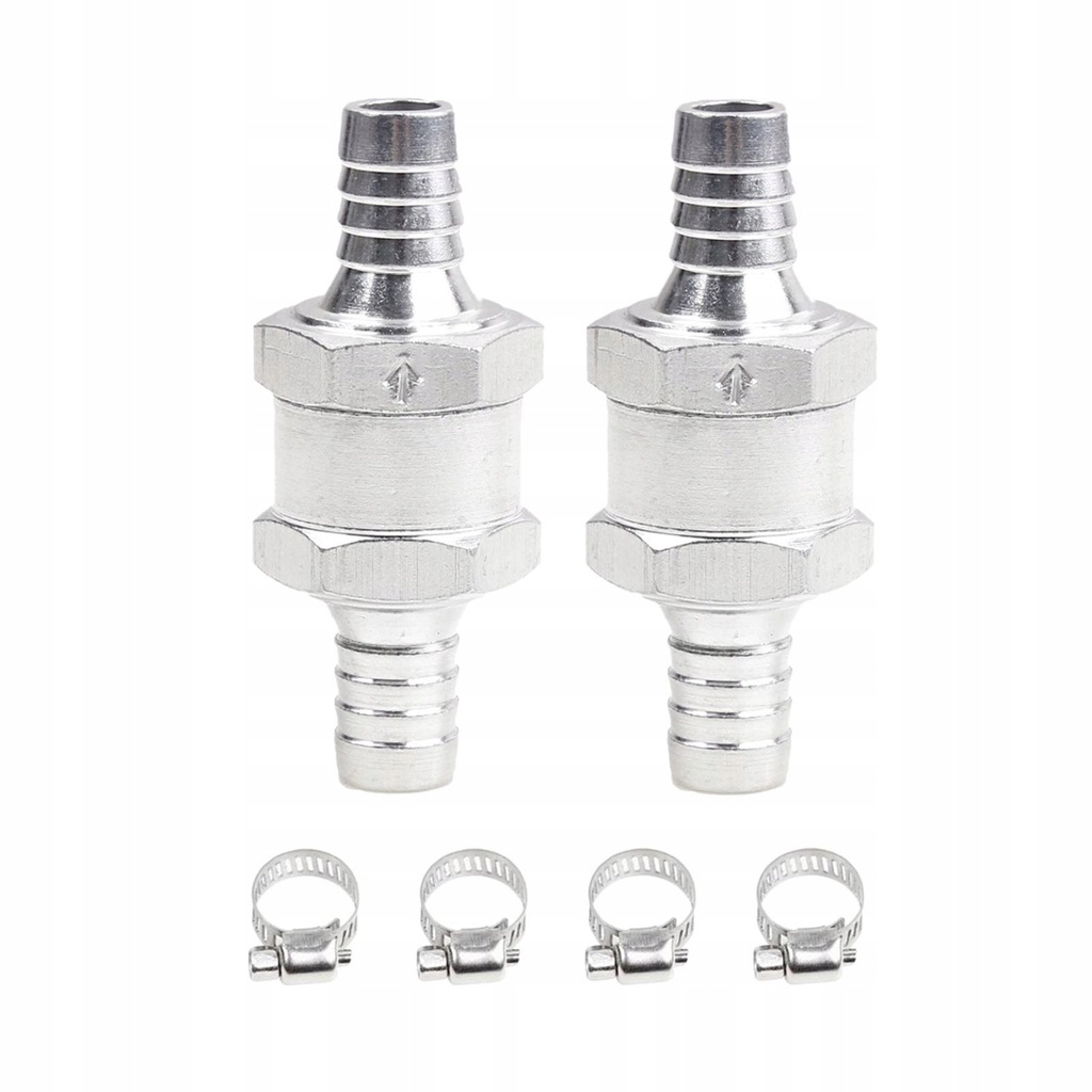 2Pcs Non Return Check Valve with 4 Hose Clamps Clips for Fuel Line Oil 10mm Diameter
