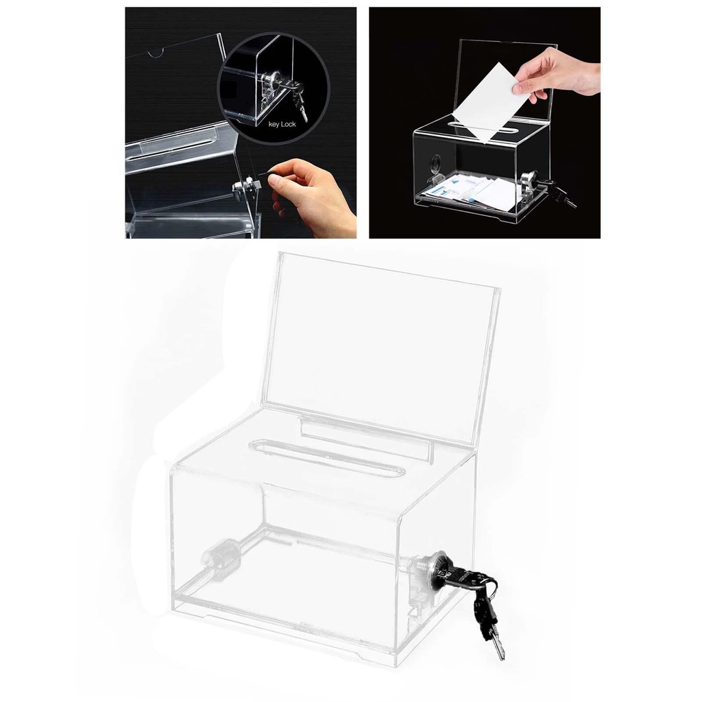 PRZEZROCZYSTE PUDEŁKO AKRYLOWE: konstrukcja umożliwia pełną widoczność zawartości w środku w celu łatwego przeglądania, chroniąc w ten sposób uczciwe przyjmowanie sugestii lub głosów.
