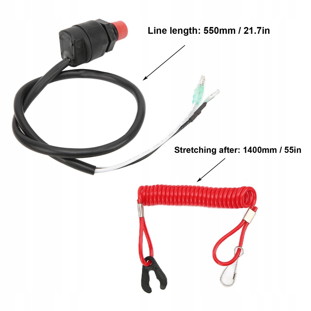 ✔️2. Długość 150 cm/59 cali, łatwa do zamontowania na kluczyku wyłącznika silnika i pomaga odciąć zasilanie/zapłon silnika zaburtowego.