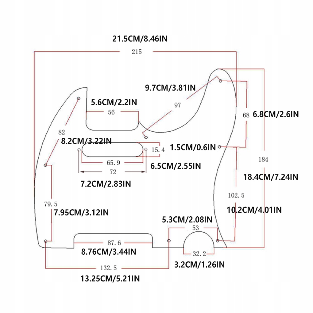 Wzornictwo: Istnieje otwory na śruby w osłonie gitary, która jest stabilna w montażu.