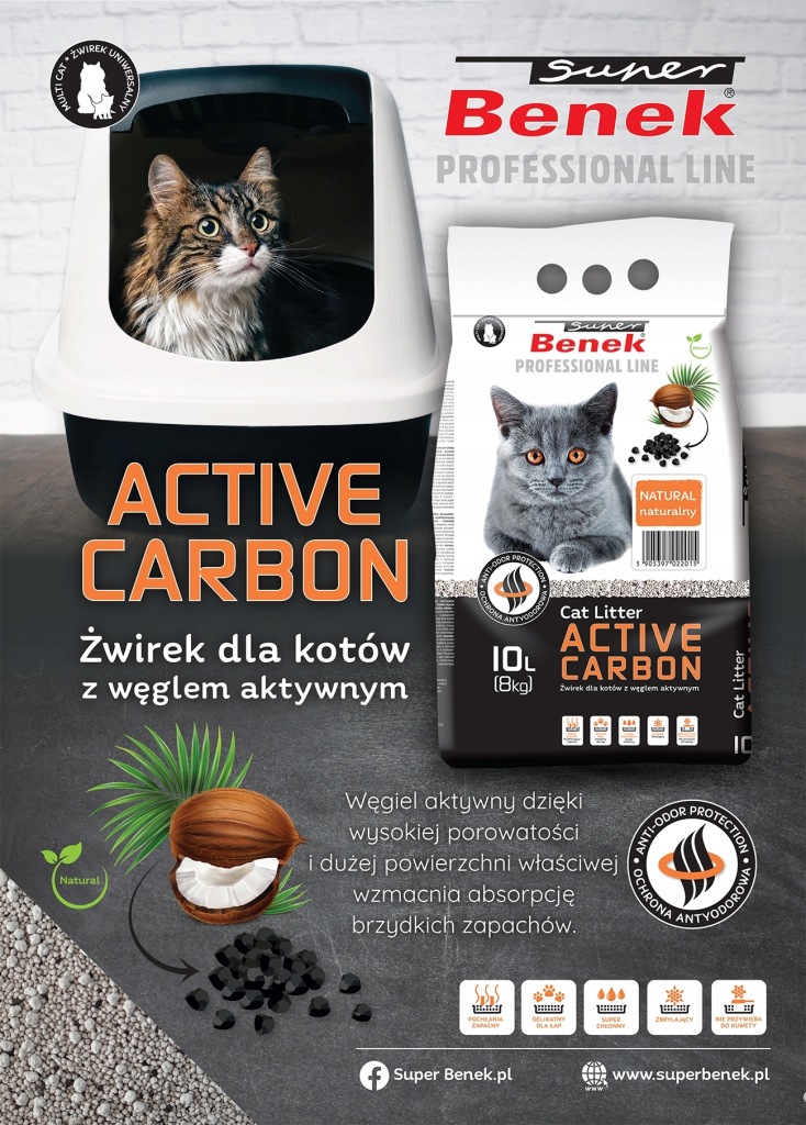 Super Benek Carbon Żwirek dla kota z Węglem Aktywnym 10 L