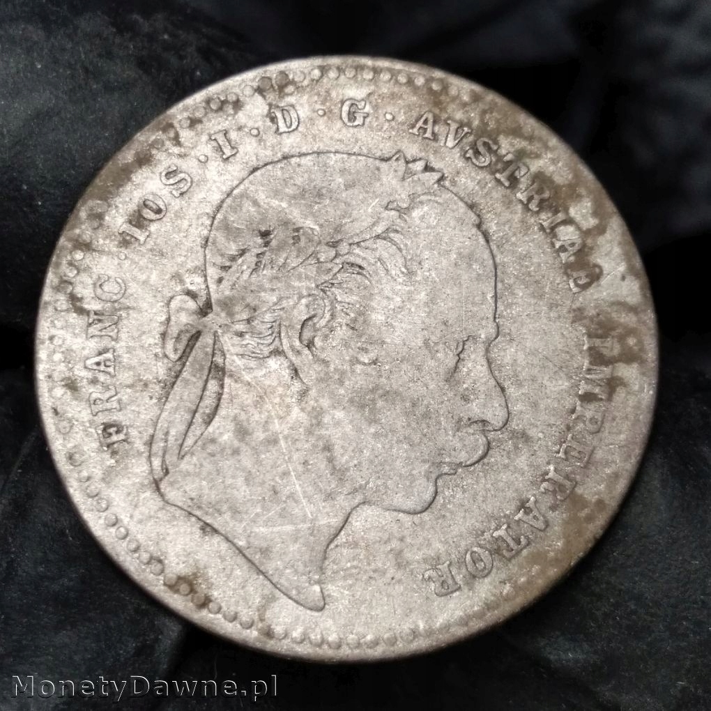 20 krajcarów 1869, Franciszek Józef I, Austria; wyraźnie obiegowy stan zachowania, patyna.