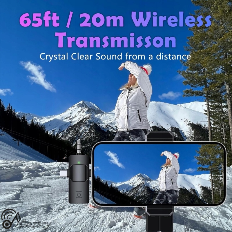 - Bezprzewodowy mikrofon krawatowy współpracuje z iPhonem, możesz po prostu przypiąć mikrofon do ubrania, aby uwolnić ręce, uzyskać 65 stóp stabilnego odbioru i swobodę nagrywania bez ograniczeń.