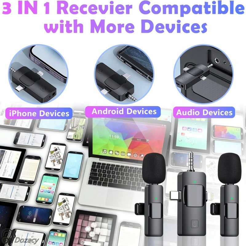 - Mikrofony bezprzewodowe, idealne dla blogerów, dziennikarzy, Mukbanga, instruktorów fitness, nauczycieli i pracowników biurowych.