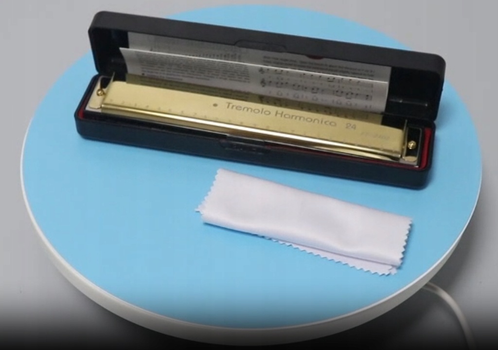 - Harmonijka ustna 24 tremolo złota futerał akcesoria organka duża C-dur