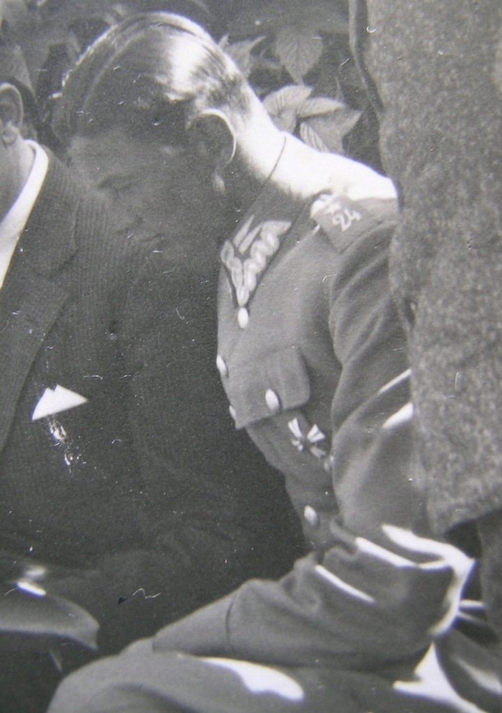 Przedmiotem licytacji jest ciekawa przedwojenna fotografia przedstawiająca Oficera 24 - tego Pułku Ułanów z Kraśnika z kolegami po cywilu. Ciekawy jasny mundur oficera. Wyraźnie widoczna odznaka pułkowa, proporczyki pułkowe na kołnierzu i numer pułku na pagonie. Format: - 85 mm. X - 60 mm.