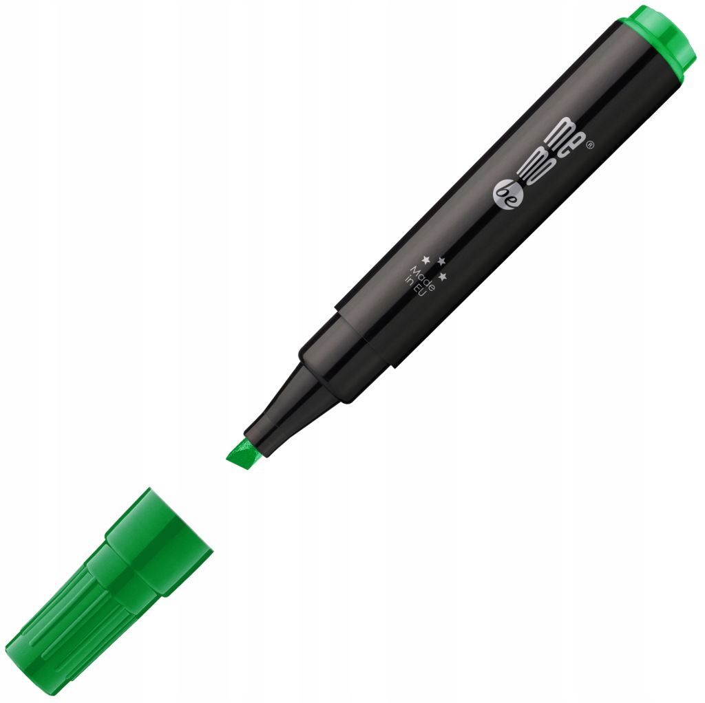 Marker permanentny MemoBe z tuszem w kolorze zielonym i ściętą końcówką w rozmiarze 1-4 mm. Przeznaczony do trwałego znakowania prawie wszystkich powierzchni, jak np.: kartonu, szkła, metalu, plastiku, drewna itd. Wodoodporny i szybkoschnący tusz o słabym zapachu. Może być pozostawiony bez skuwki do 14 dni (ISO 554). Obudowa markera wykonana w 30% z tworzyw z recyklingu. Wyposażony w wentylowaną skuwką zgodną z normą ISO 11540:1993. Dostępny w 4 kolorach: czarnym, zielonym, czerwonym i niebieskim. Wyprodukowany w Europie. Dostarczany w opakowaniu 10 szt.