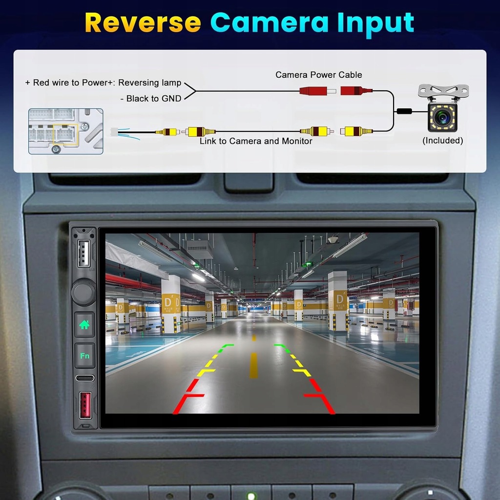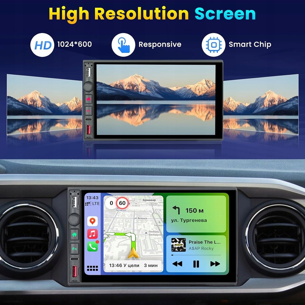 7-calowy ekran dotykowy o rozdzielczości 1024 x 600, z portem USB i TYPE-C oraz wejściem AUX. Wysokowydajny chip dekodera zapewnia płynne działanie. Obsługuje DVR (nagrywanie wideo – opcjonalnie). Wielokolorowe podświetlenie klawiszy zmienia się automatycznie.
