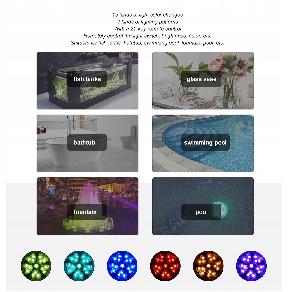1. Podwodne świata basenowe, wodoodporny do IP68 i może świecić pod wodą.
