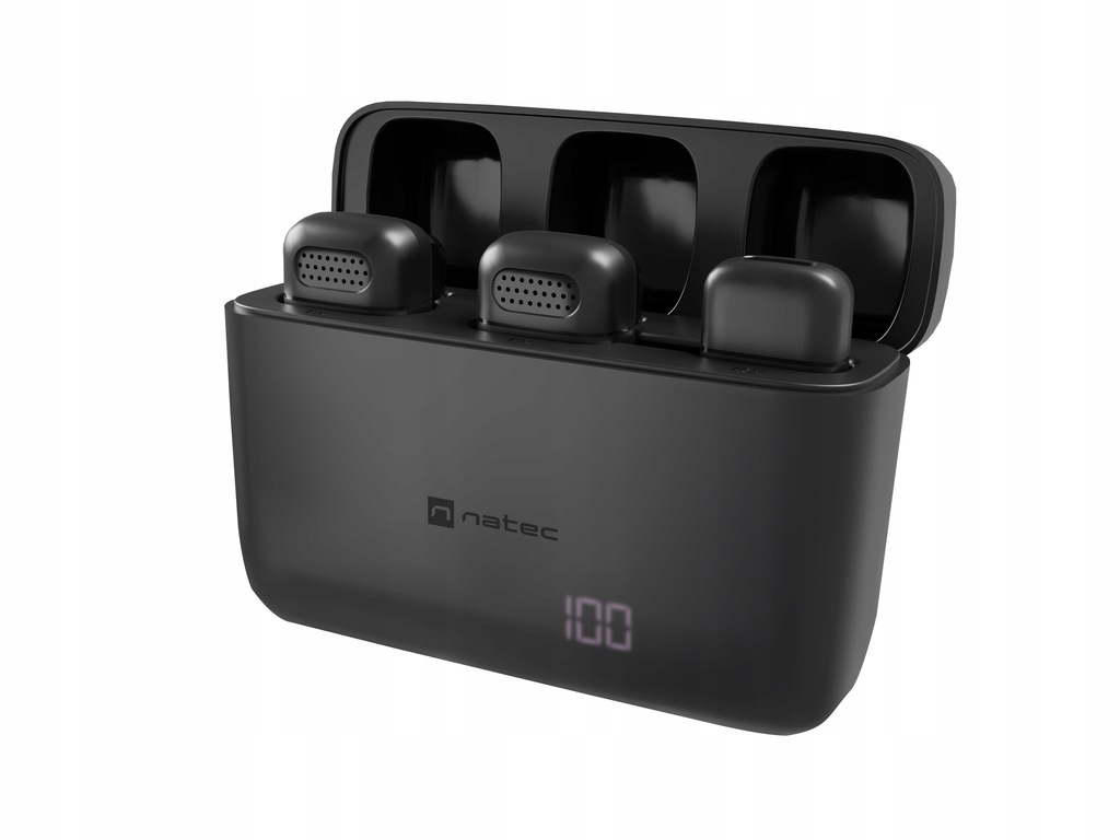 - Długa praca dzięki bateri 40mAH w mikrofonach i 200mAH w etui