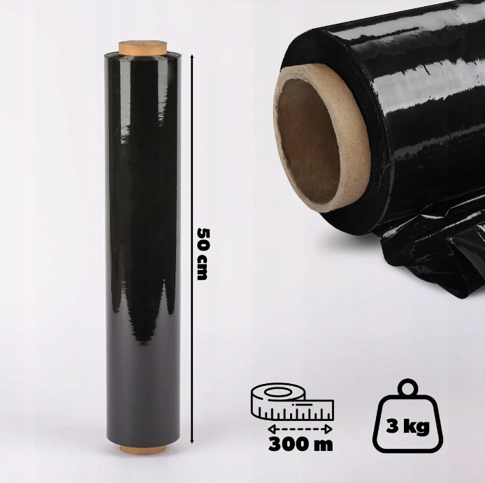 2 SZTUKI ! Mocna folia stretch czarna 50 cm | 3 kg brutto | 2,5 kg netto !