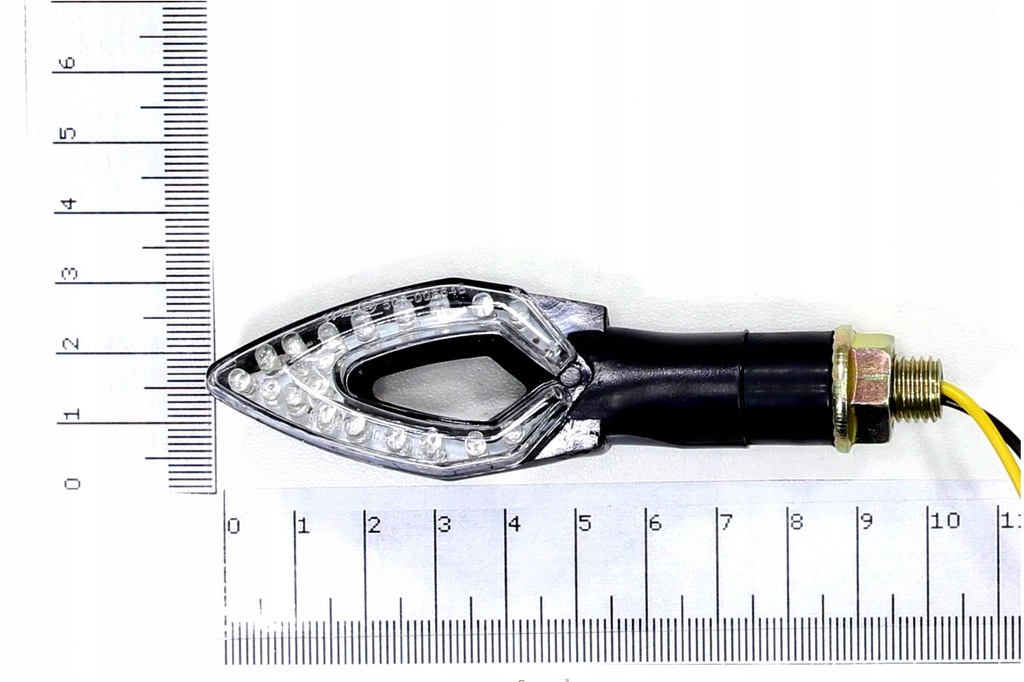 Kierunkowskazy są bardzo dobrze i solidnie wykonane w technologi LED zgodnie z fabrycznym standardem. Długość całkowita jednego z nich wynosi ok. 10.5cm. Kierunkowskazy są podłączane za pomocą dwóch przewód i pasują w oryginalne miejsca montażowe. Atrakcyjny wygląd pustej w środku strzałki daje niesamowity efekt świetlny. Dzięki sprawdzonej, wysokiej jakości zapewniają długą i bezproblemową eksploatację.