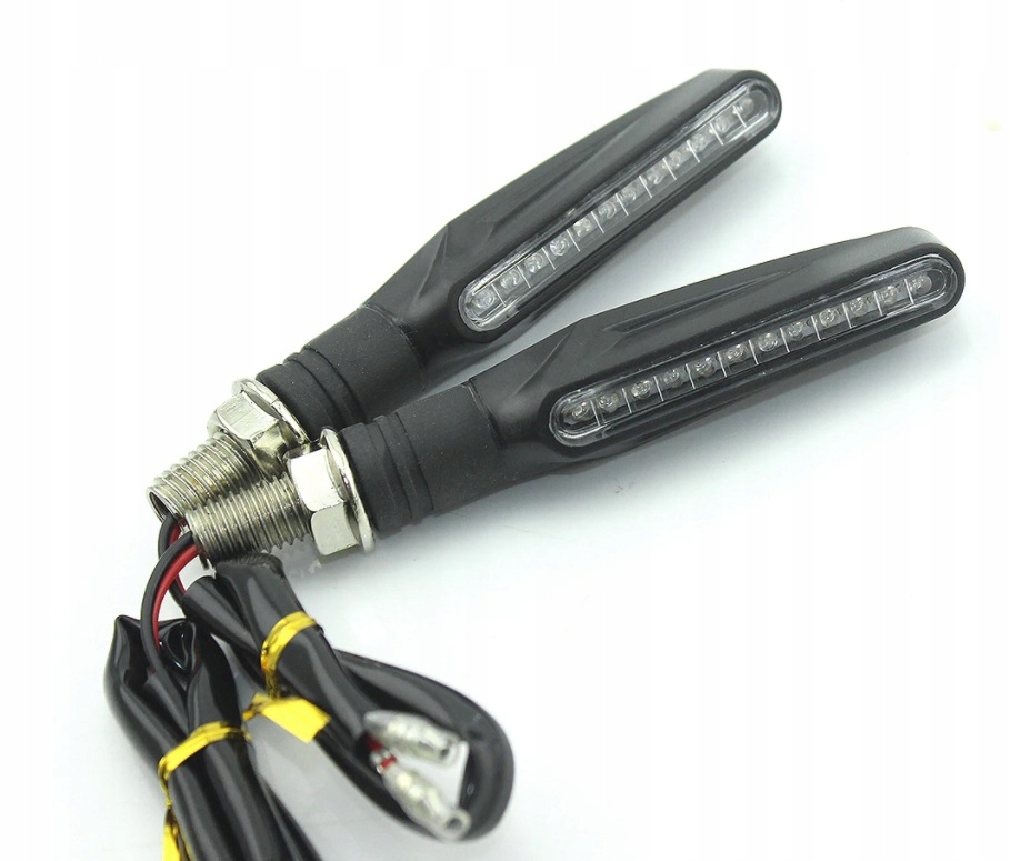 Bardzo ładny kształt oraz mocne diody LED (12 LED SMD 3528 SMD 12v) gwarantują długoletnie użytkowanie. Kierunkowskazy montowane na gwint M10 wyposażone w elastyczne ramię.