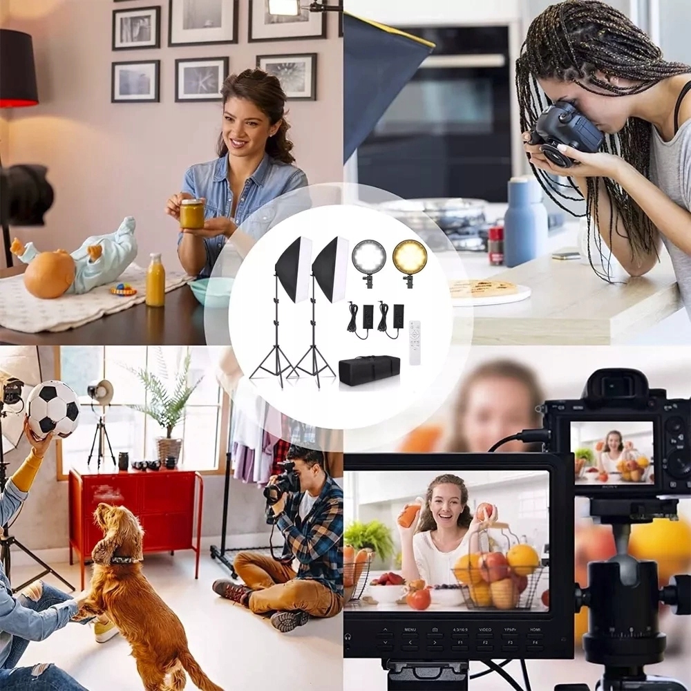 ✔️ Co otrzymujesz?: 2x Lampa Led Softbox, 2x Pilot, 2x Statyw, 1x torba transportowa