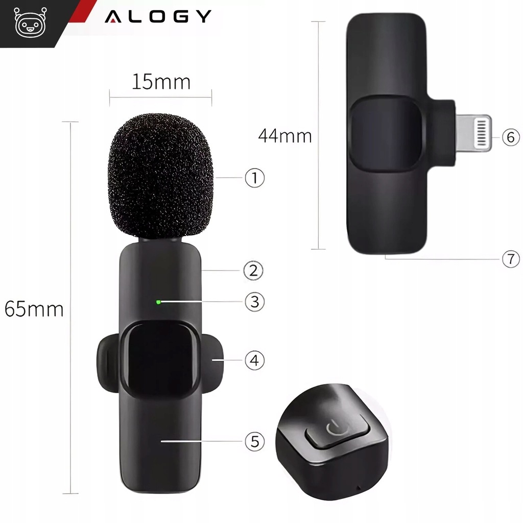 2x mikrofon krawatowy bezprzewodowy Alogy Lightning do Apple iPhone iPad ma