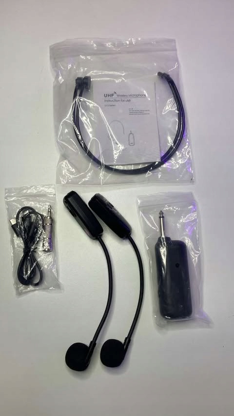 - Jeden odbiornik łączy dwa mikrofony jednocześnie. Może być używany przez dwie osoby jednocześnie, nie będą się ze sobą zakłócać i jest wygodny w użyciu.