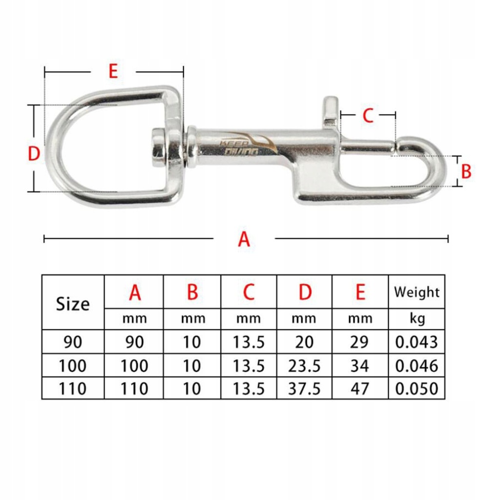 2x Karabińczyk Ze Stali Nierdzewnej Z Karabińczykiem Do Nurkowania 100mm Z Pojedynczym Końcem