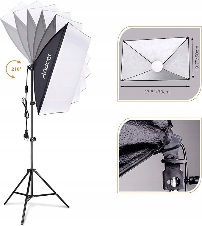 - ★【Profesjonalny softbox】: 50 * 70 cm / 20 * 28 cali z białą tkaniną dyfuzora, która zapewnia doskonałe i równomierne oświetlenie; z mocowaniem E27 do bezpośredniej instalacji światła LED; a softbox może obracać się o 210 °, aby mieć optymalne kąty światła, dzięki czemu Twoje zdjęcia i filmy są bardziej profesjonalne
