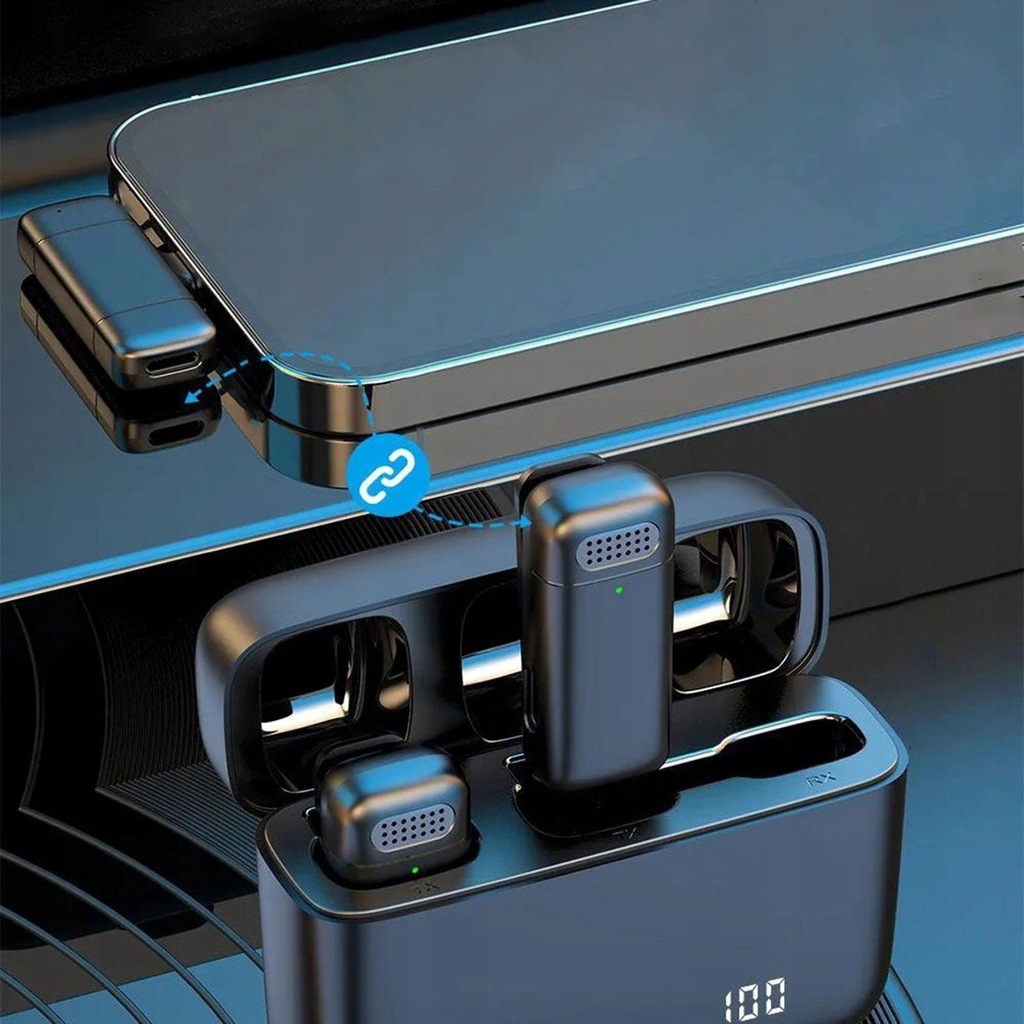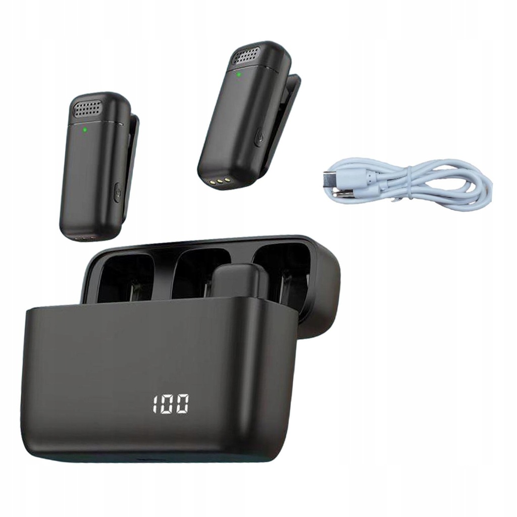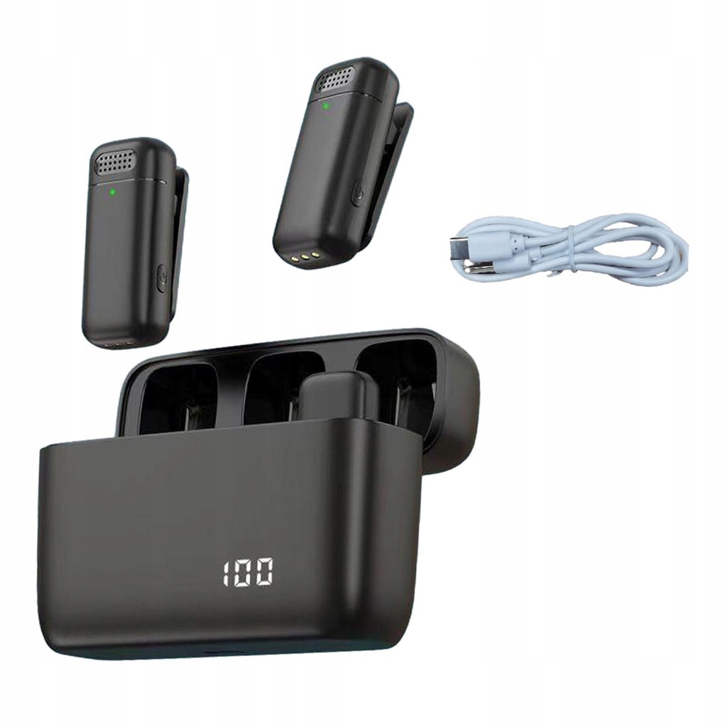 2Pcs Wireless Lapel Microphone Loud Volume for Vlog Interview Live Stream Black